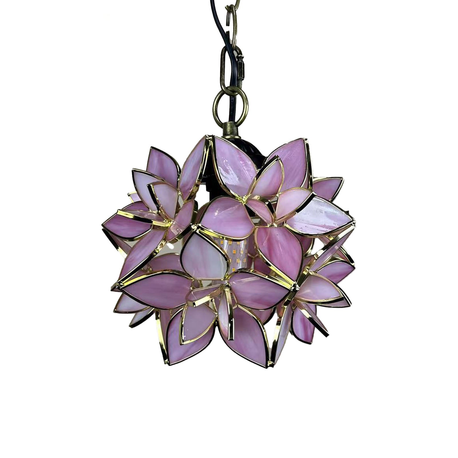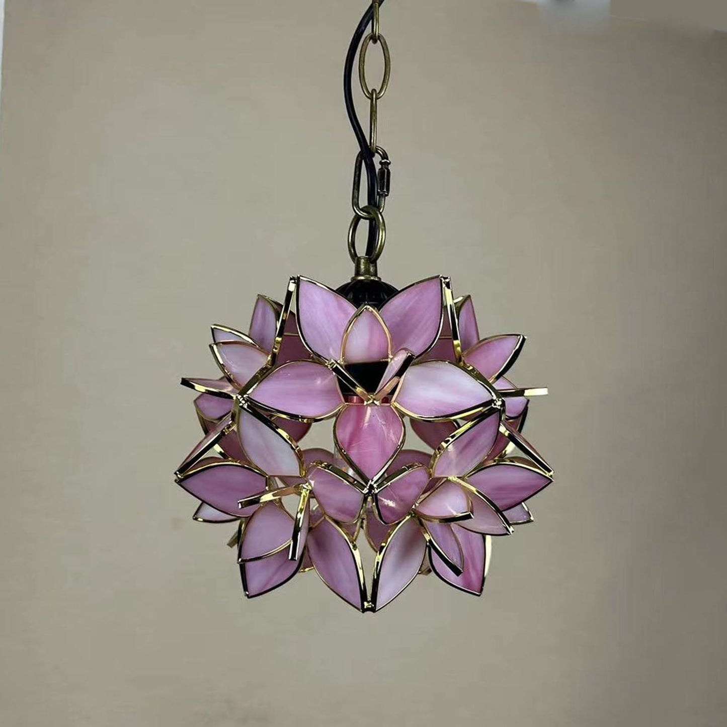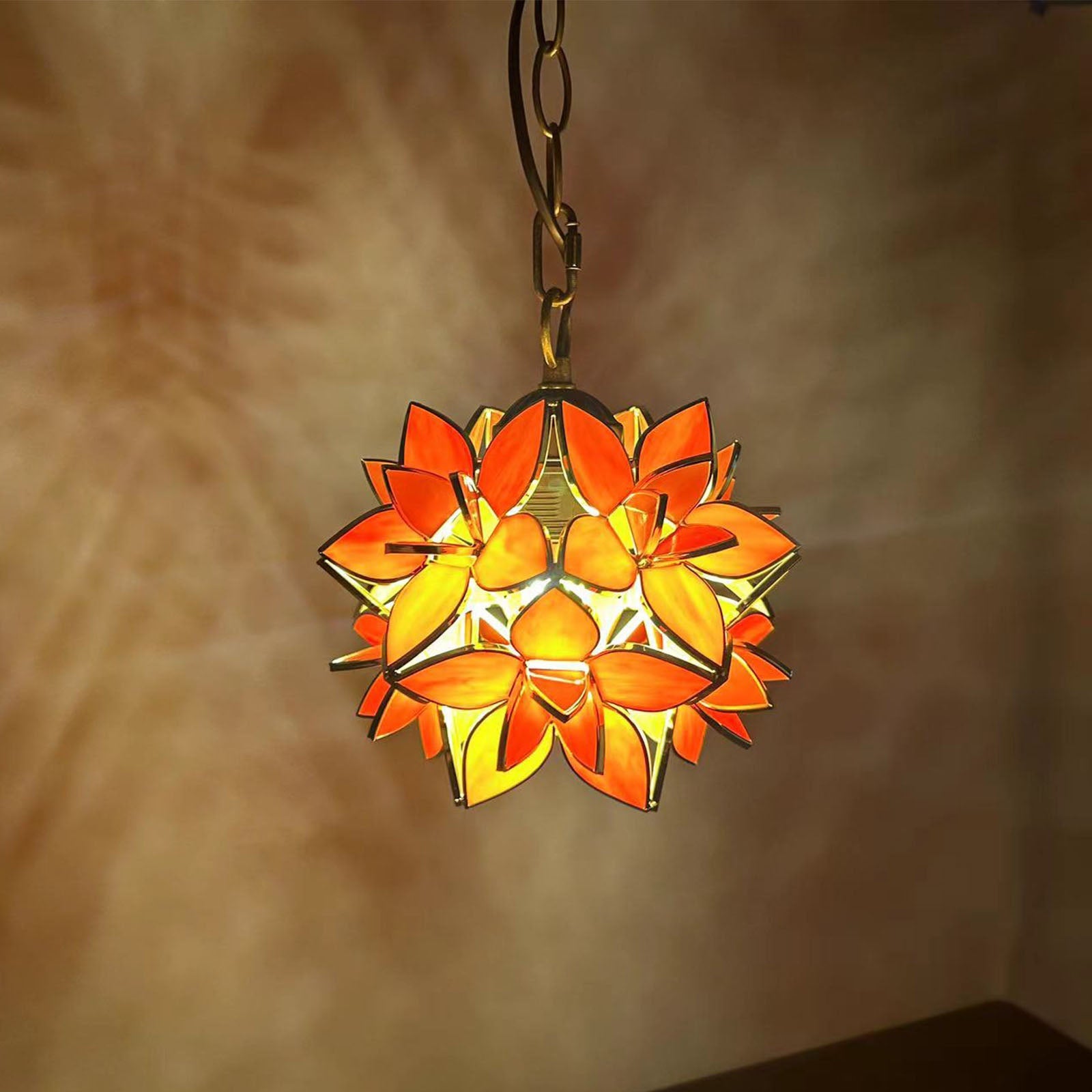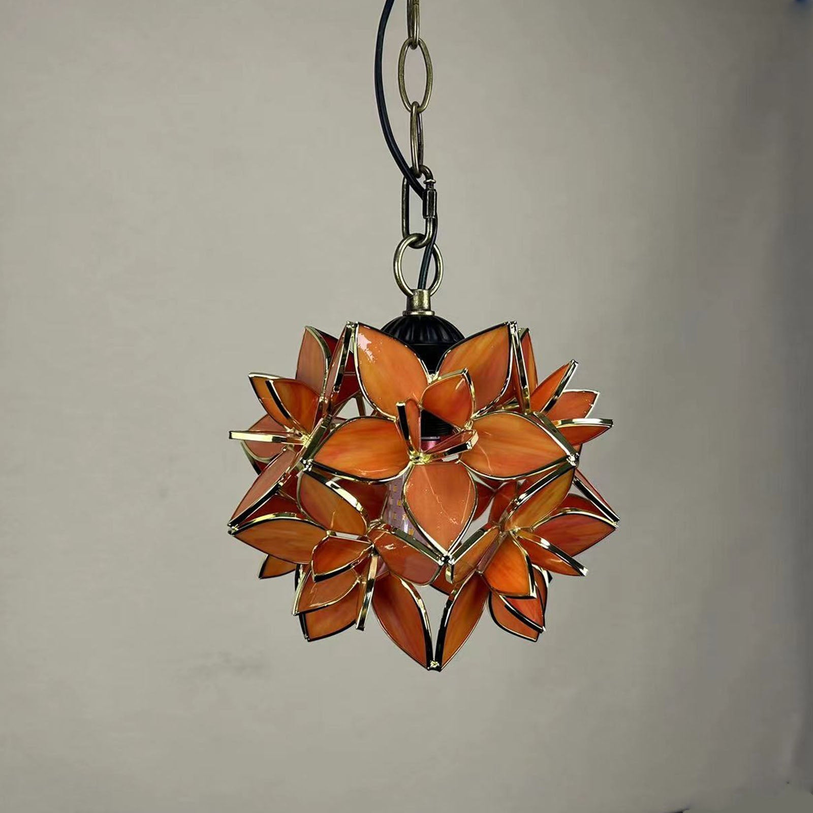 Traditional Tiffany Round Flower Ball Zinc Stained Glass 1-Light Pendant Light For Living Room