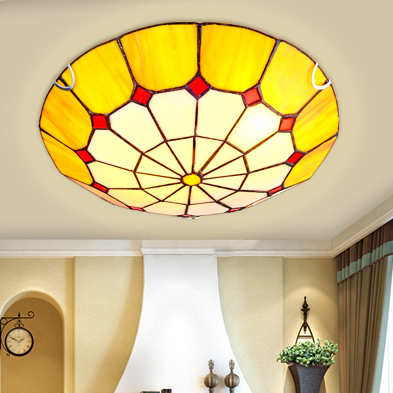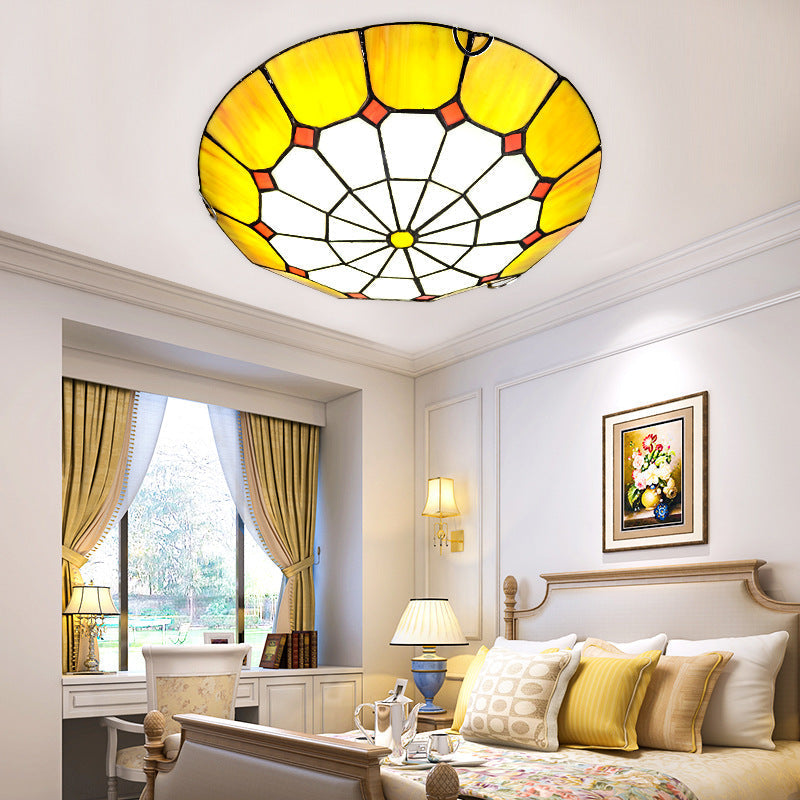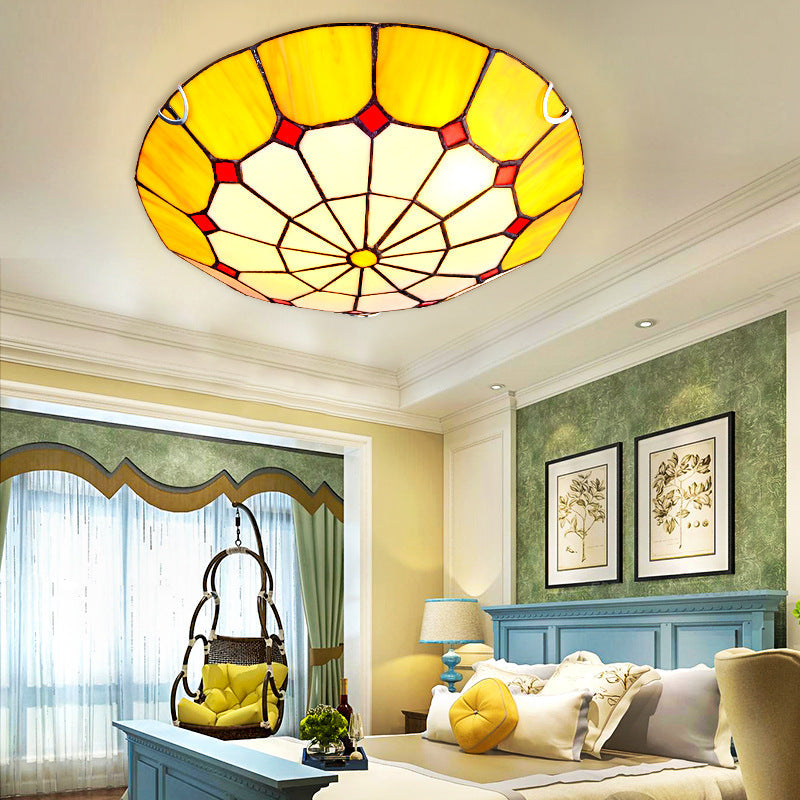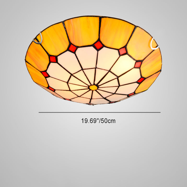 Traditional Tiffany Round Hardware Stained Glass 2/3/4 Light Flush Mount Ceiling Light For Living Room