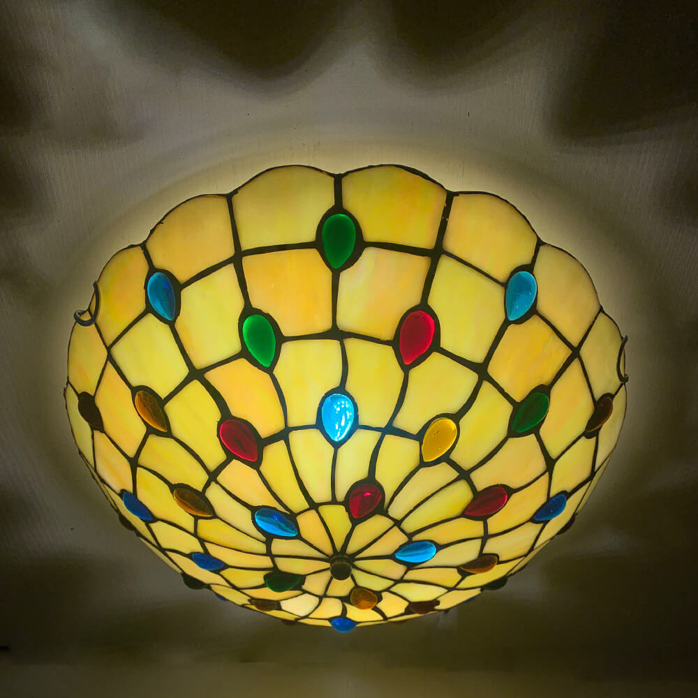 Traditional Tiffany Round Shell Bead Stained Glass 2-Light Flush Mount Ceiling Light For Hallway