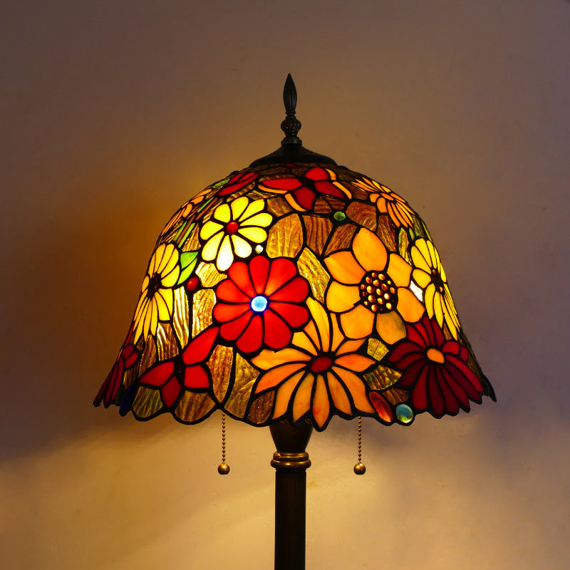Traditional Tiffany Stained Glass Daisy Dragonfly Shade 2-Light Standing Floor Lamp For Bedroom
