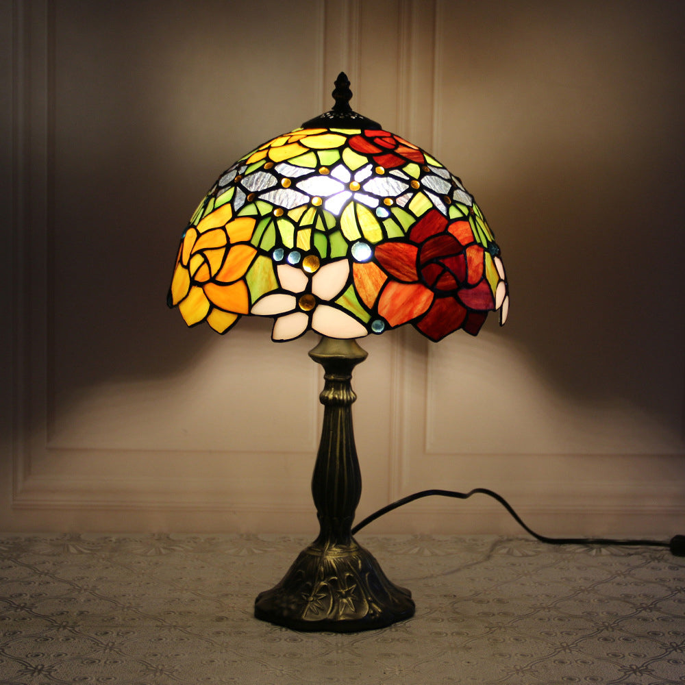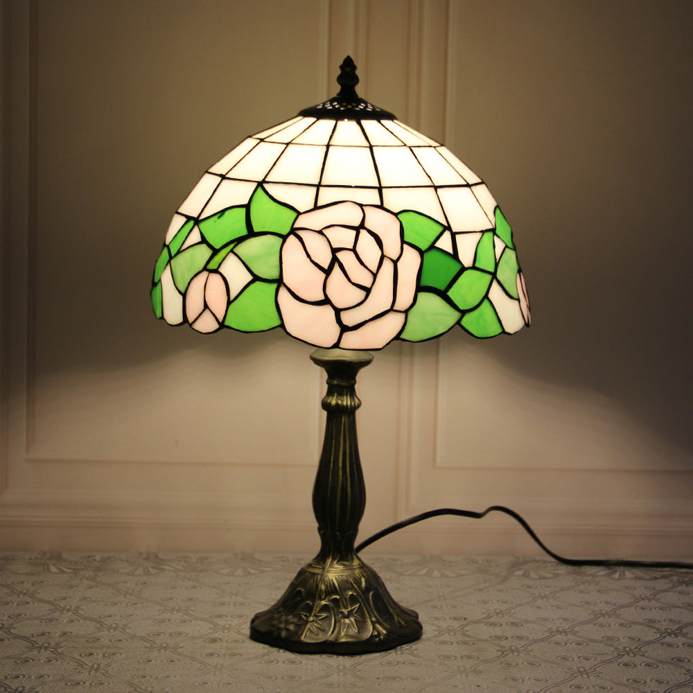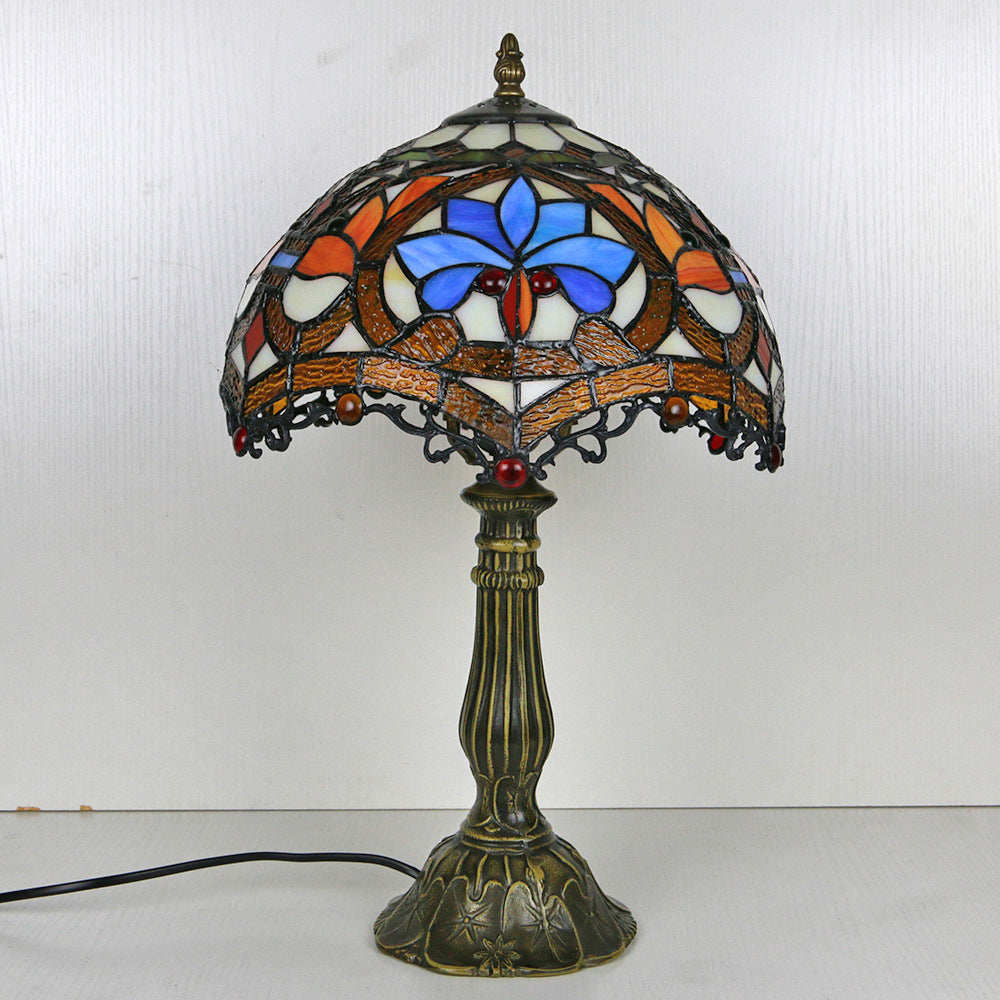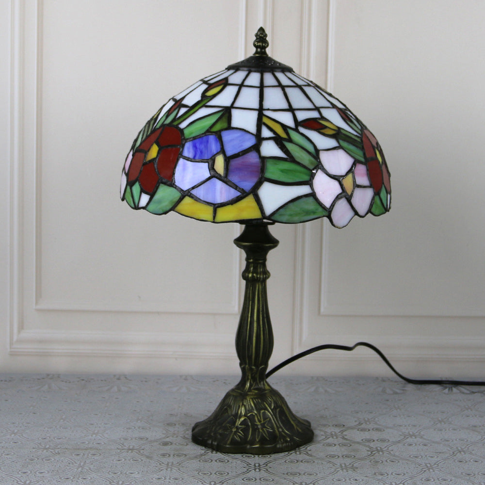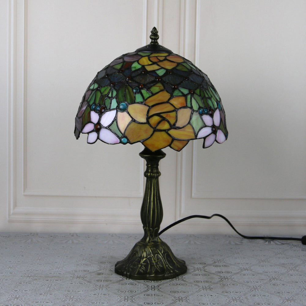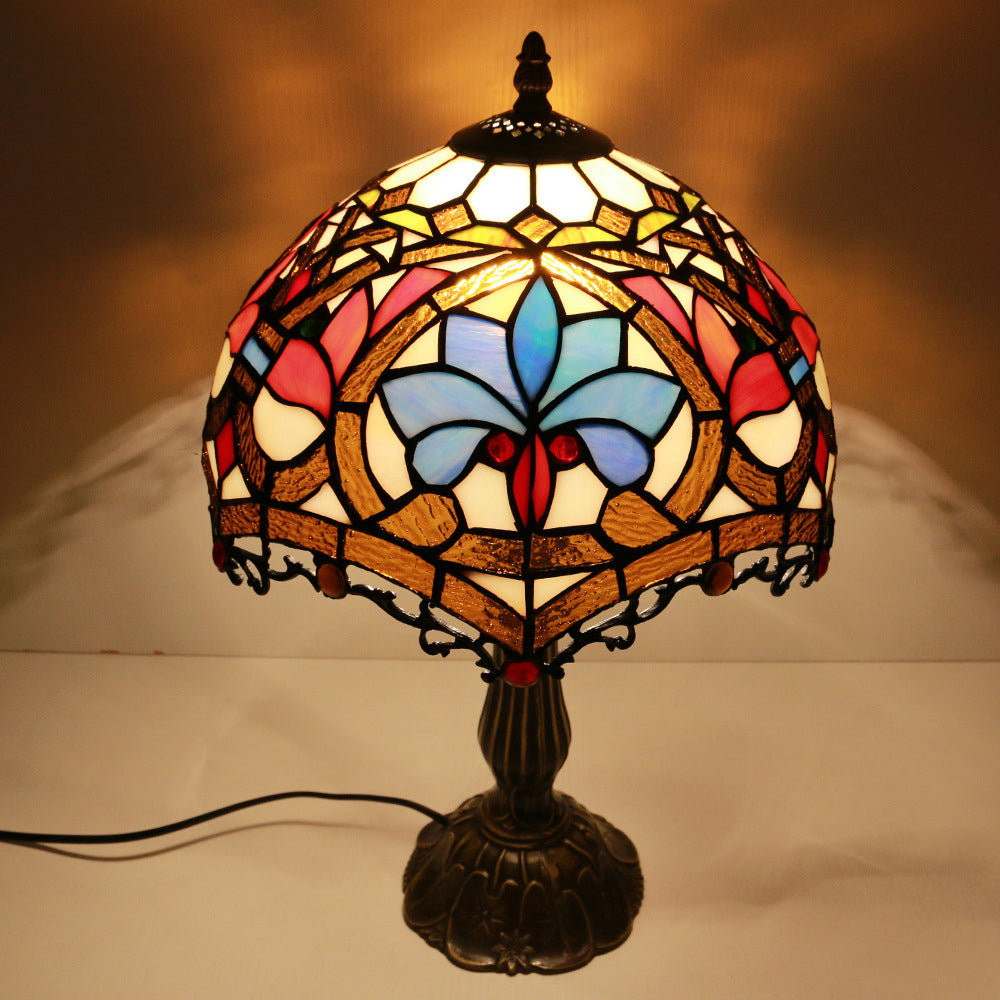 Traditional Tiffany Stained Glass Dome Shade Lotus Alloy Base 1-Light Table Lamp For Bedroom