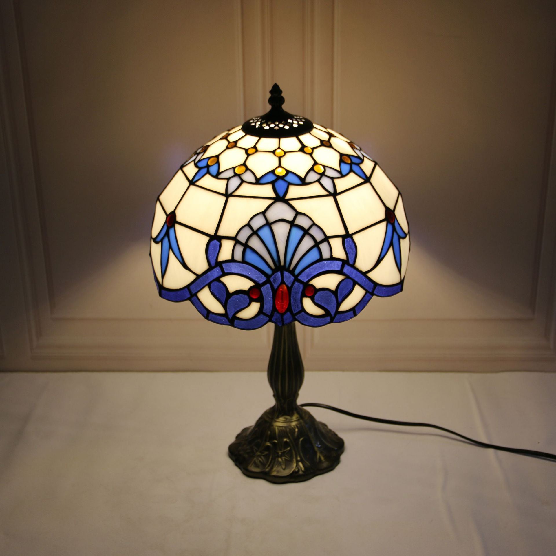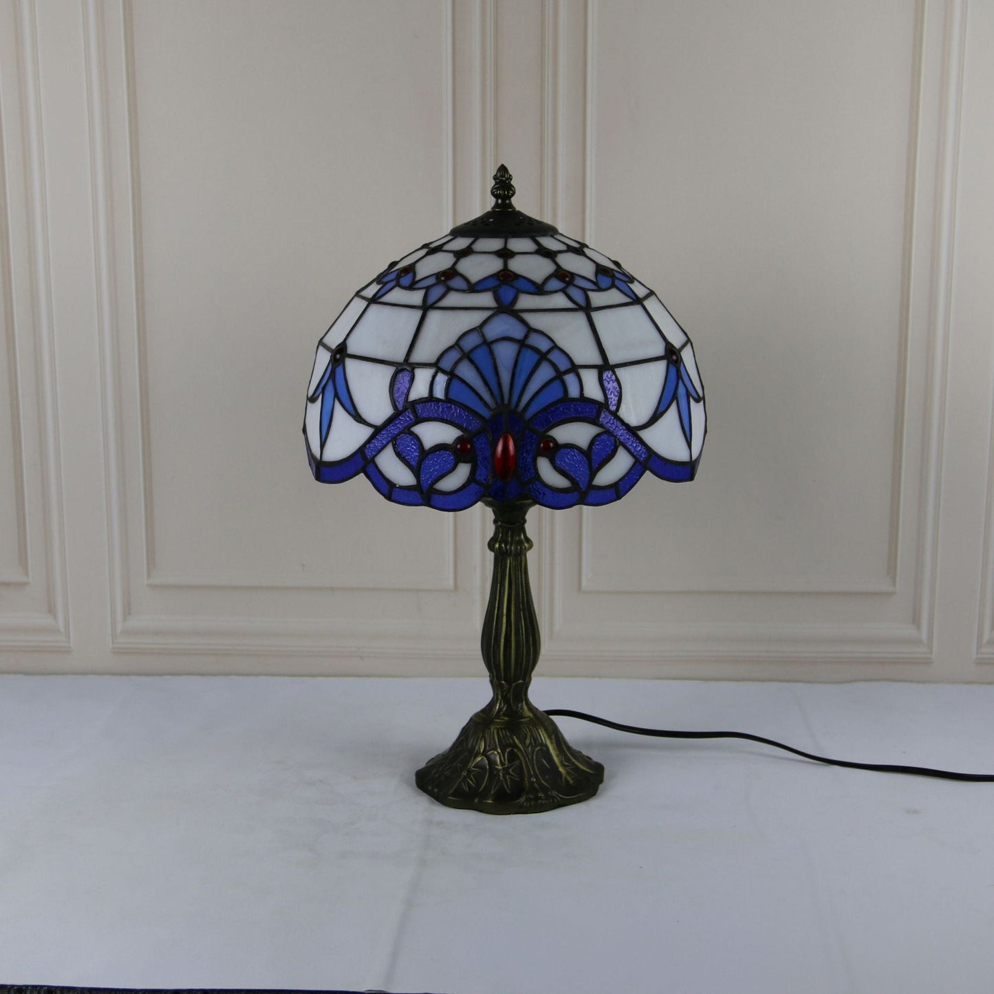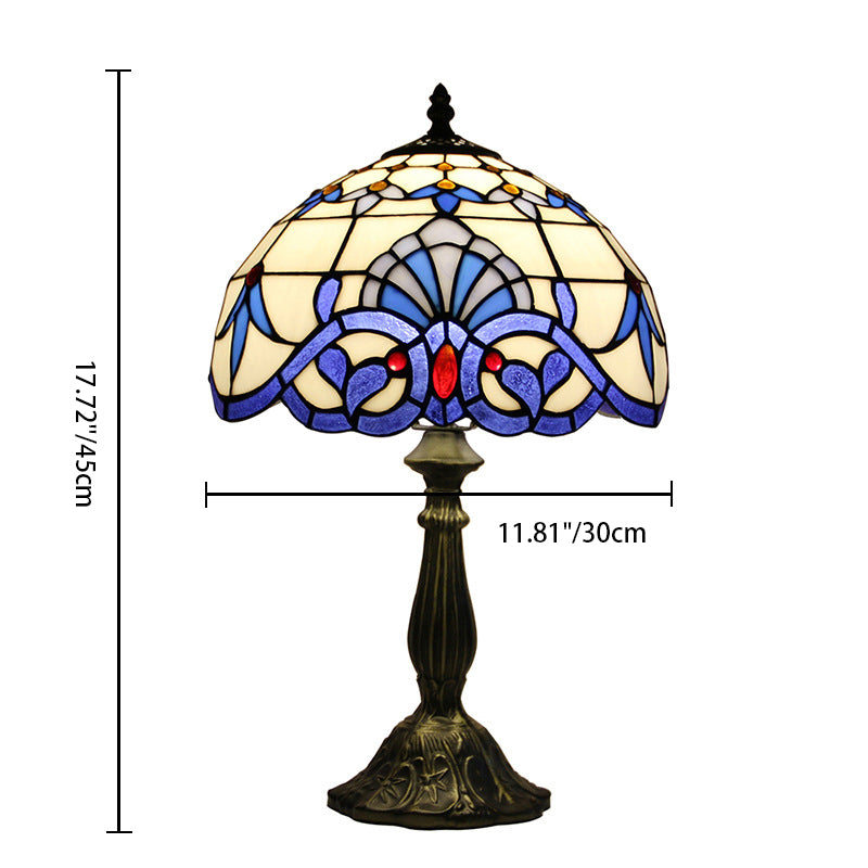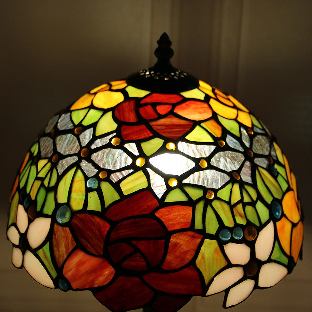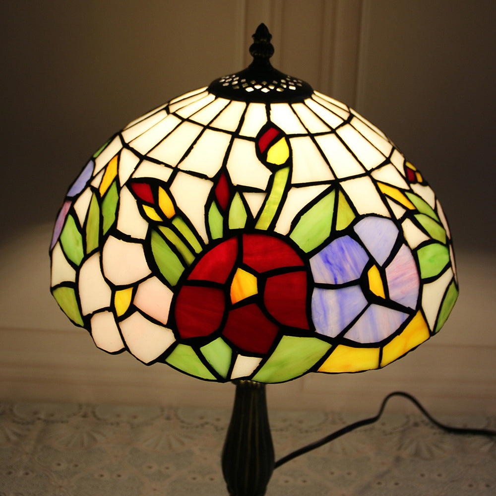 Traditional Tiffany Stained Glass Dome Shade Lotus Alloy Base 1-Light Table Lamp For Bedroom