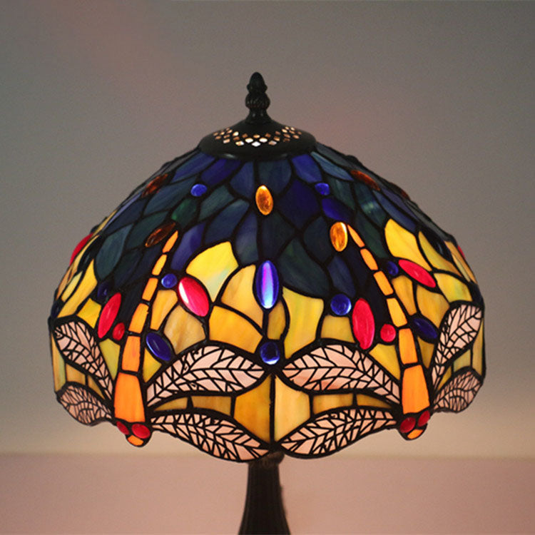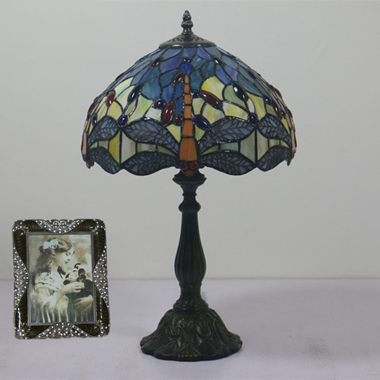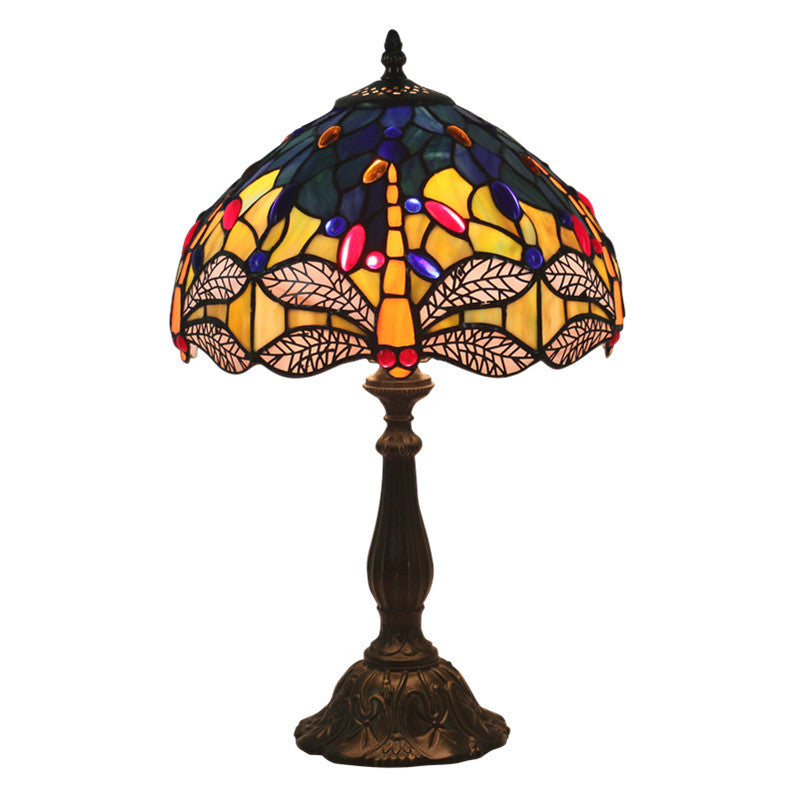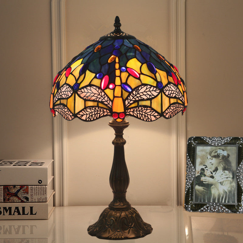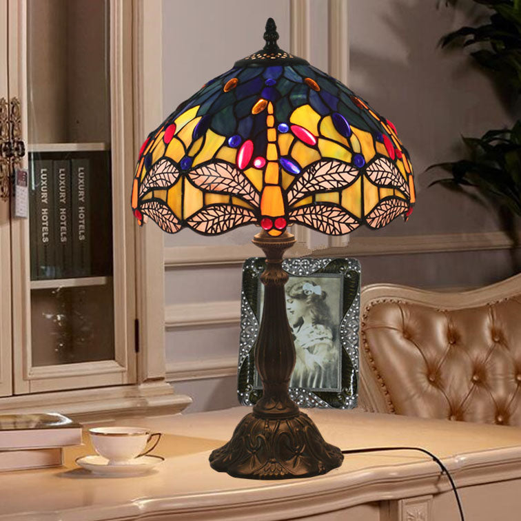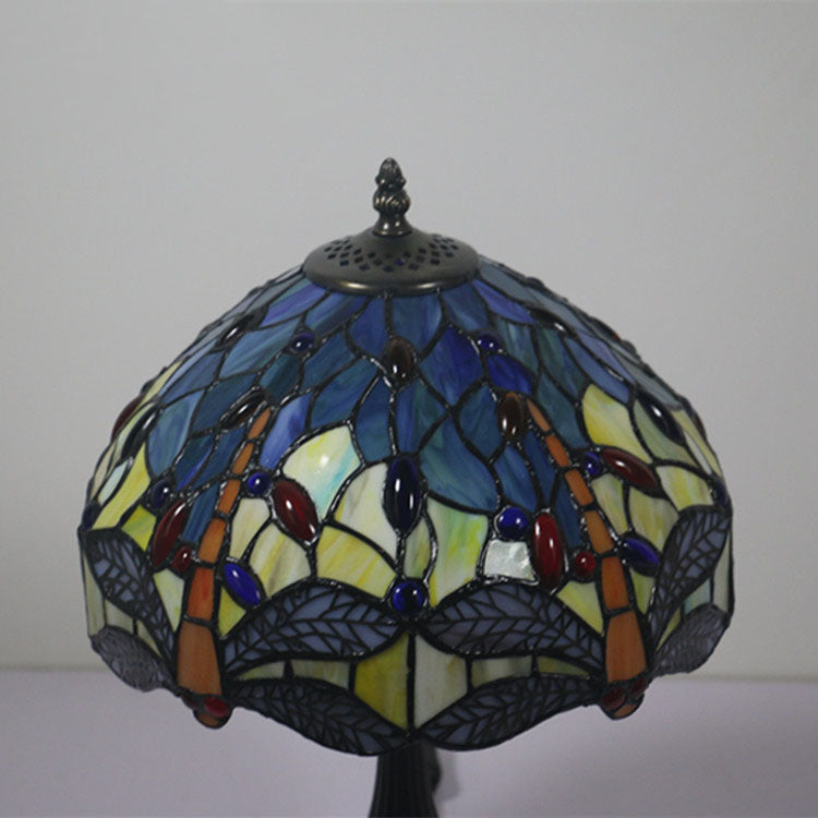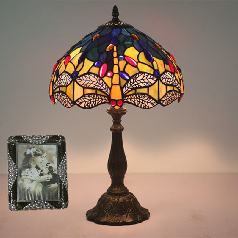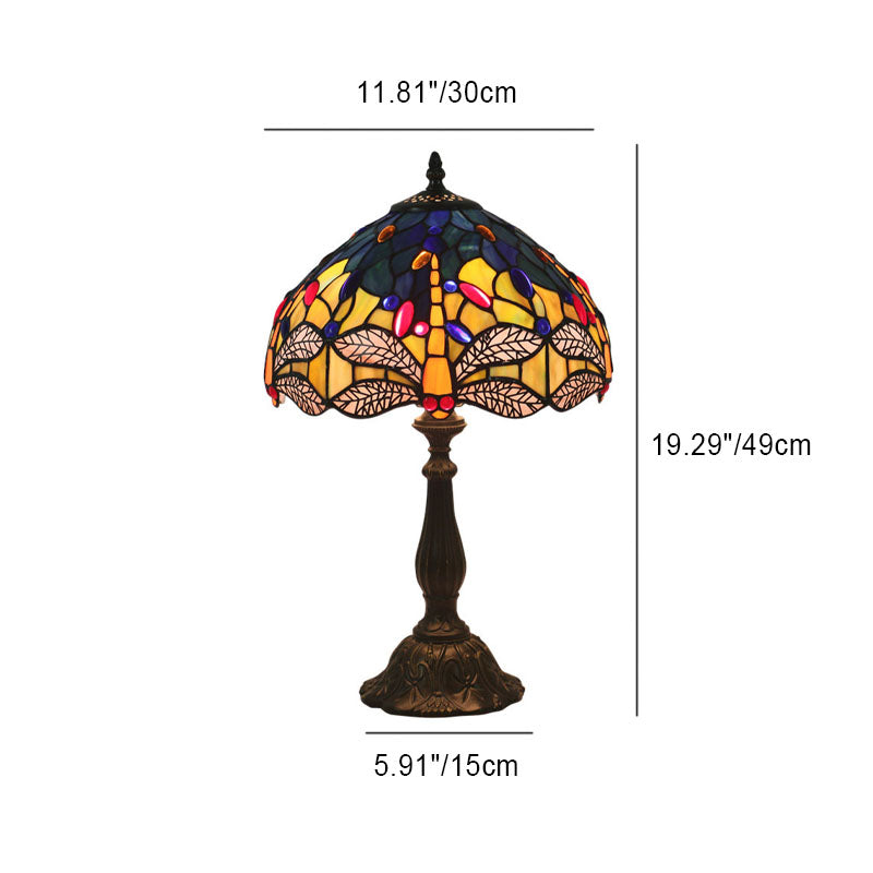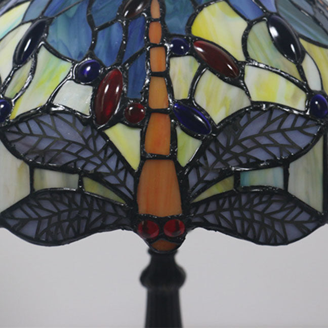 Traditional Tiffany Stained Glass Dragonfly 1-Light Table Lamp For Living Room