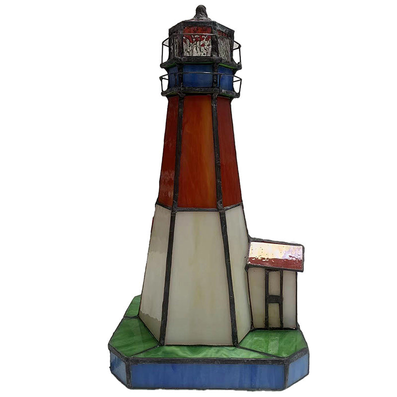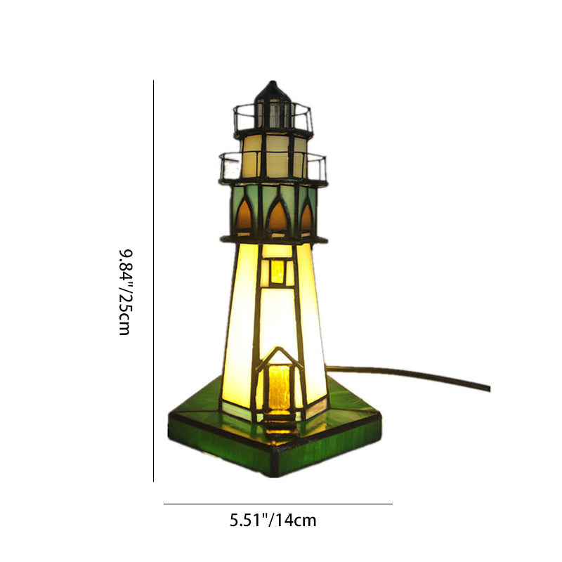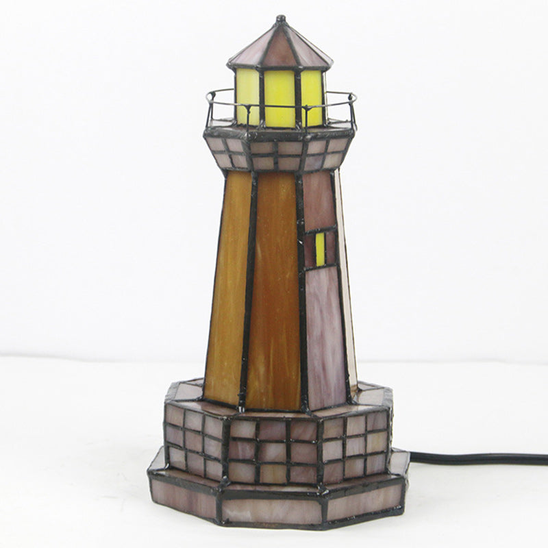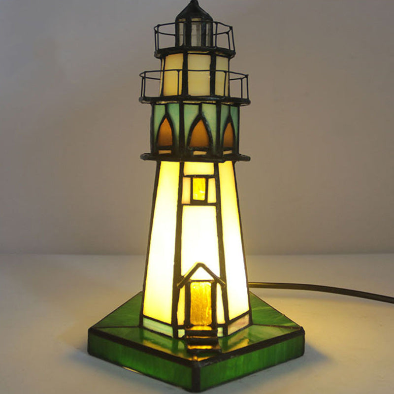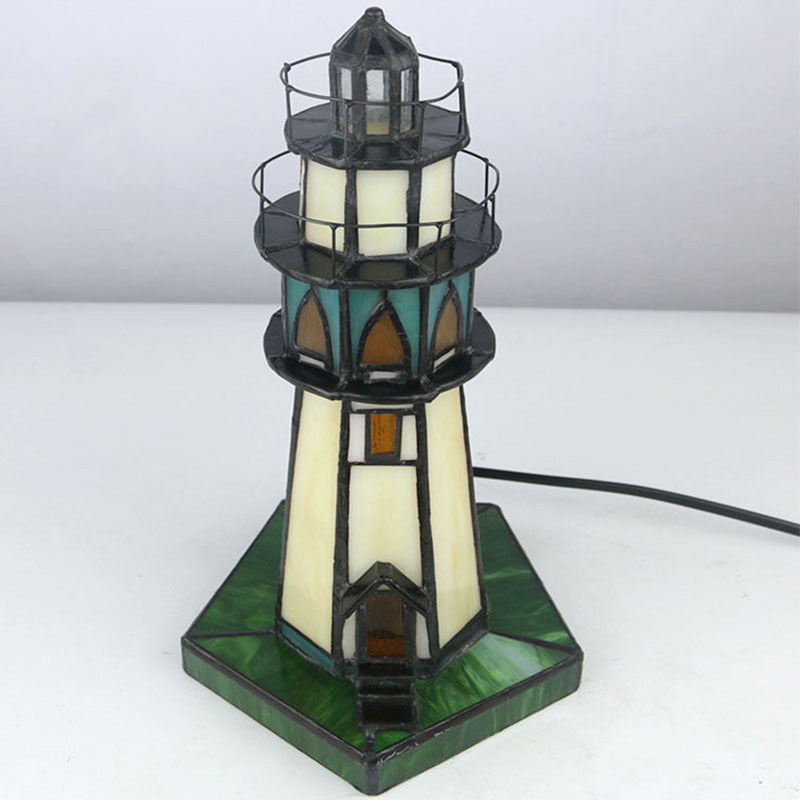 Traditional Tiffany Stained Glass Lighthouse Hardware 1-Light Table Lamp For Bedroom