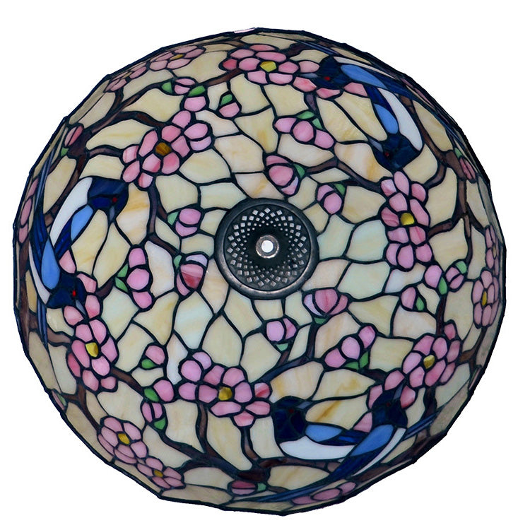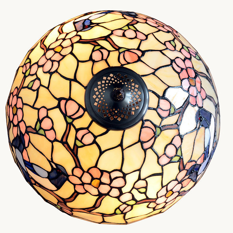 Traditional Tiffany Stained Glass Magpie Plum Blossom Dome 2-Light Standing Floor Lamp For Home Office