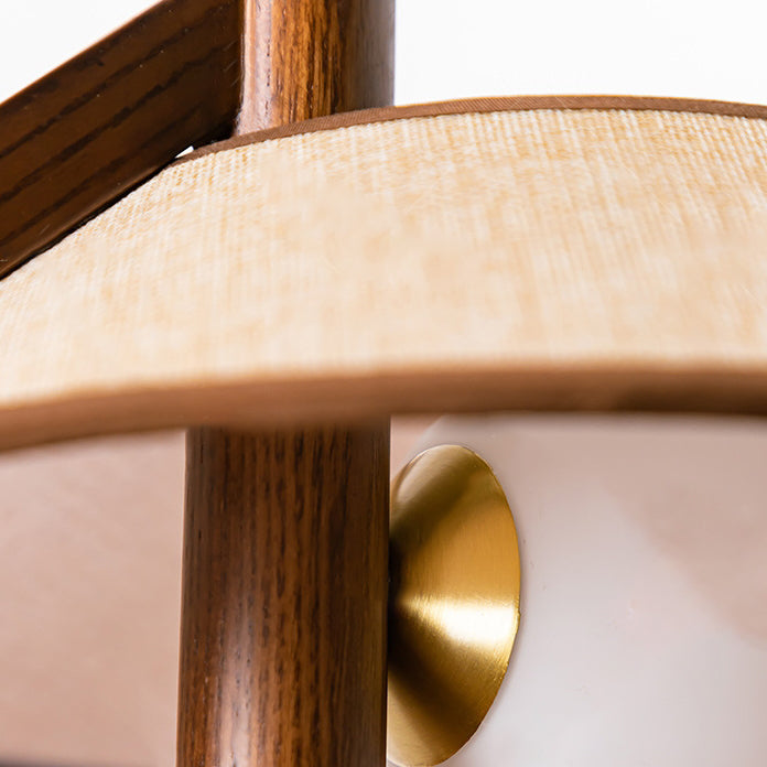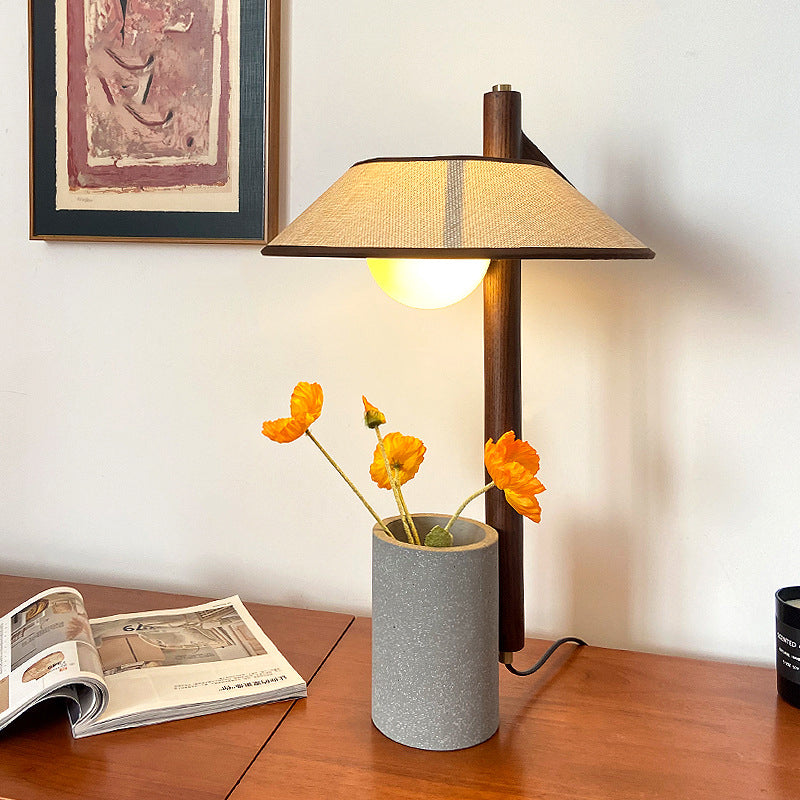 Traditional Vintage Ash Wood Fabric Cement Conic Cylinder Vase 1-Light Table Lamp For Bedroom