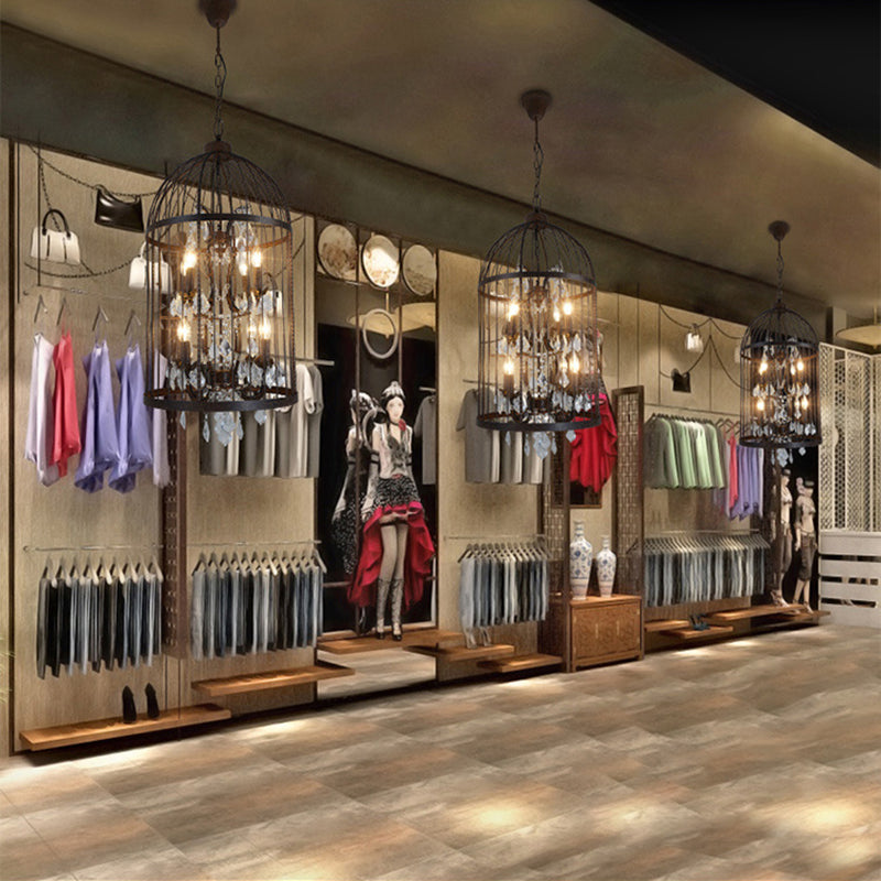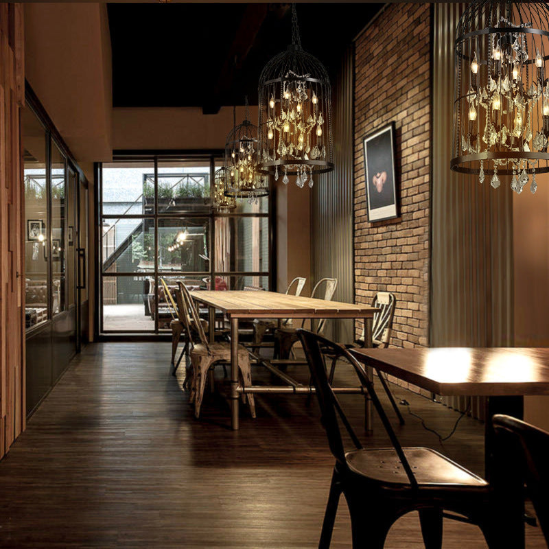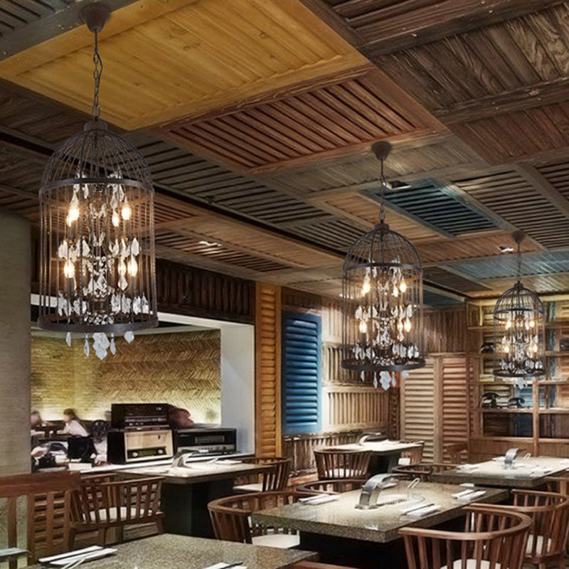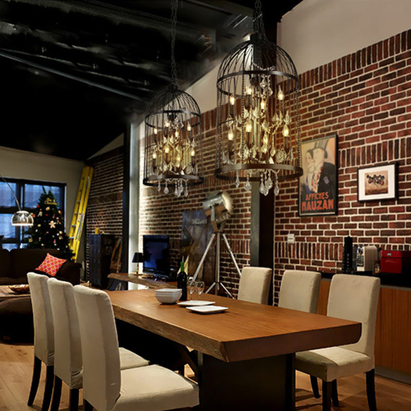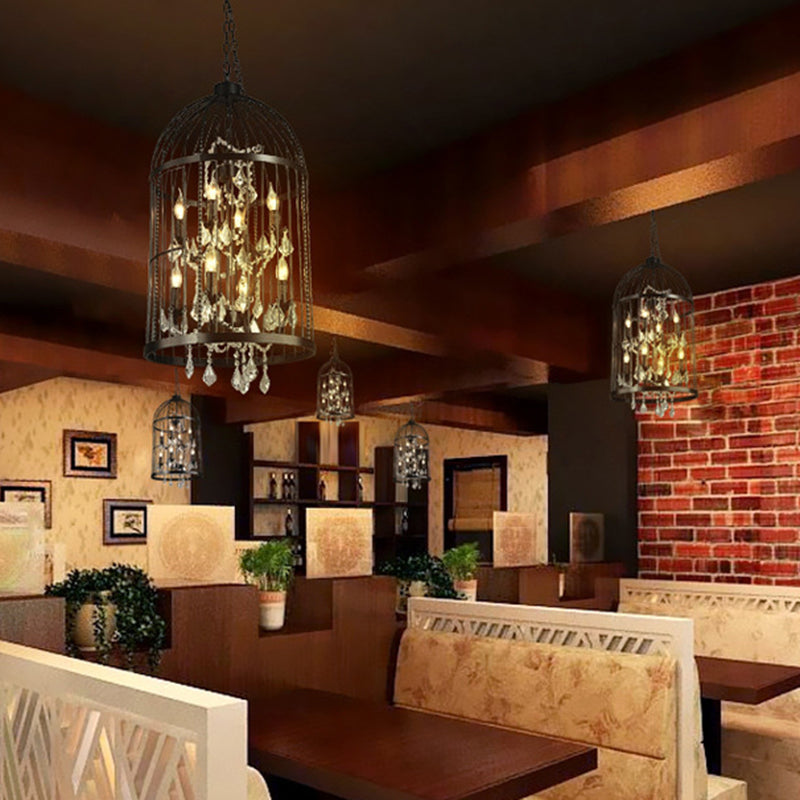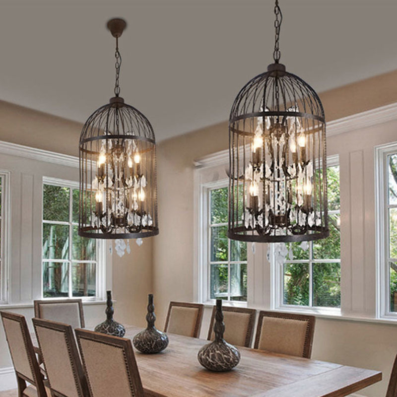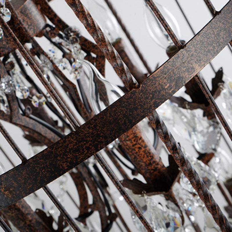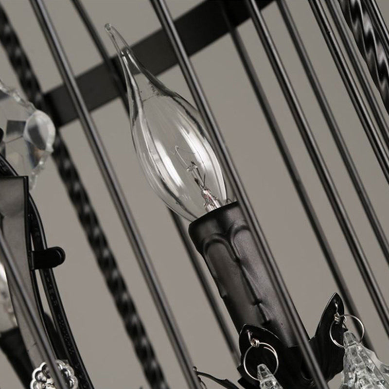 Traditional Vintage Birdcage Candle Holder Water Drops Rhombus Iron Crystal 8-Light Chandelier For Living Room