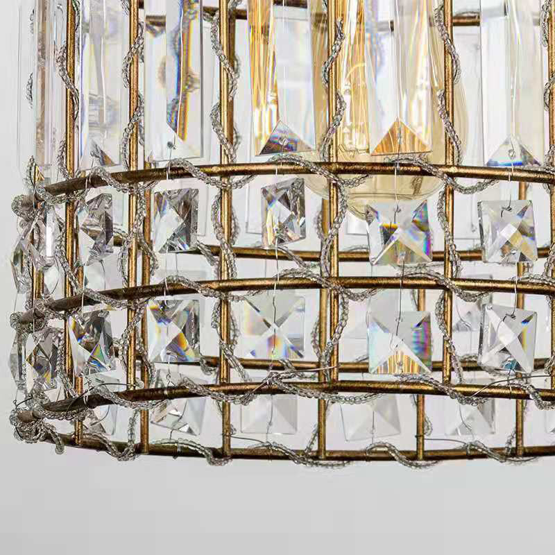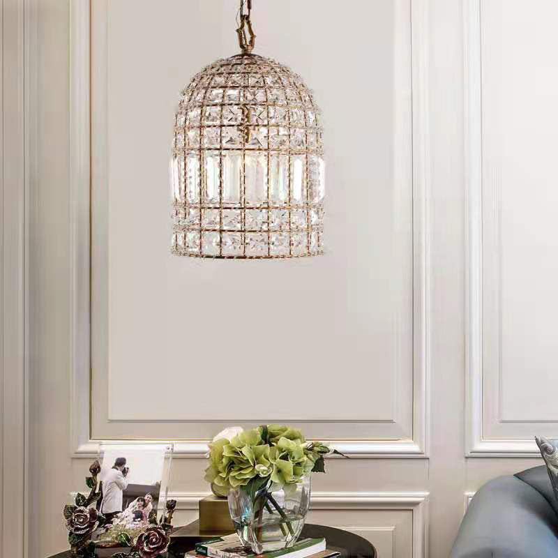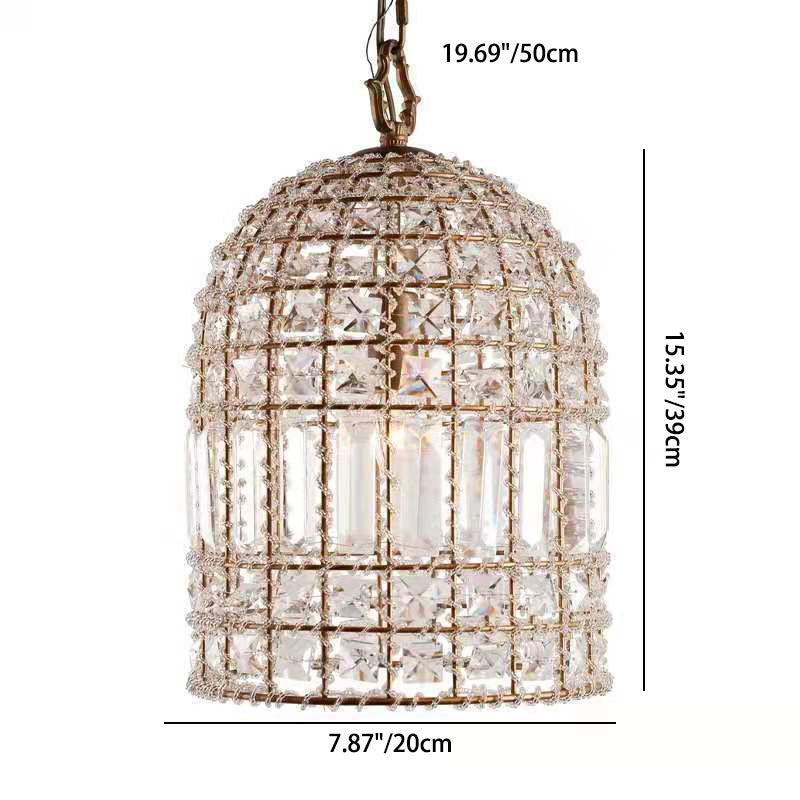 Traditional Vintage Birdcage Grid Iron Crystal 1-Light Chandelier For Bedroom