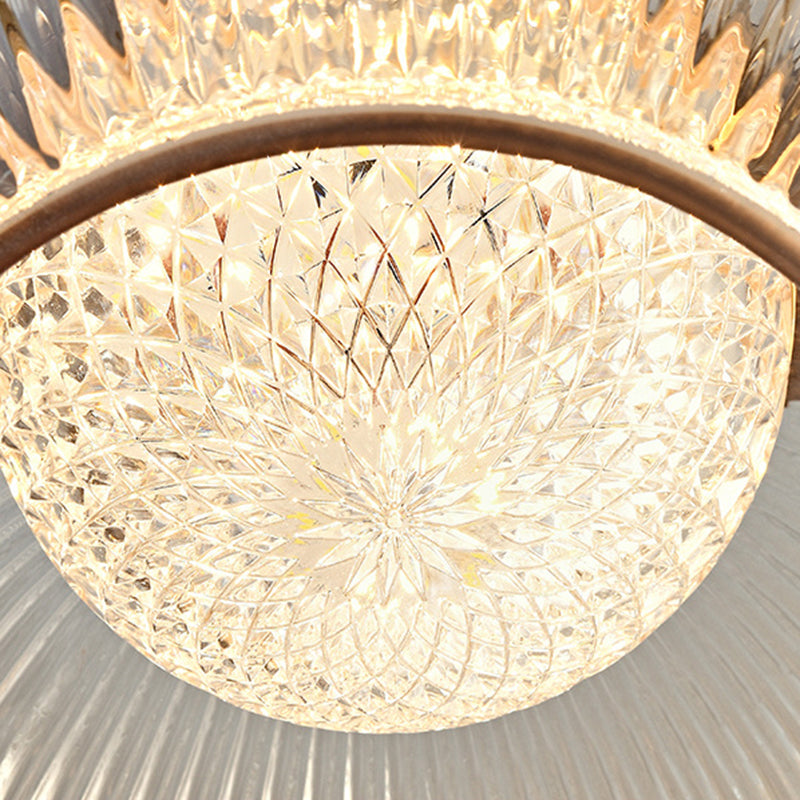 Traditional Vintage Bowl Walnut Wood Copper Glass LED Semi-Flush Mount Light For Living Room