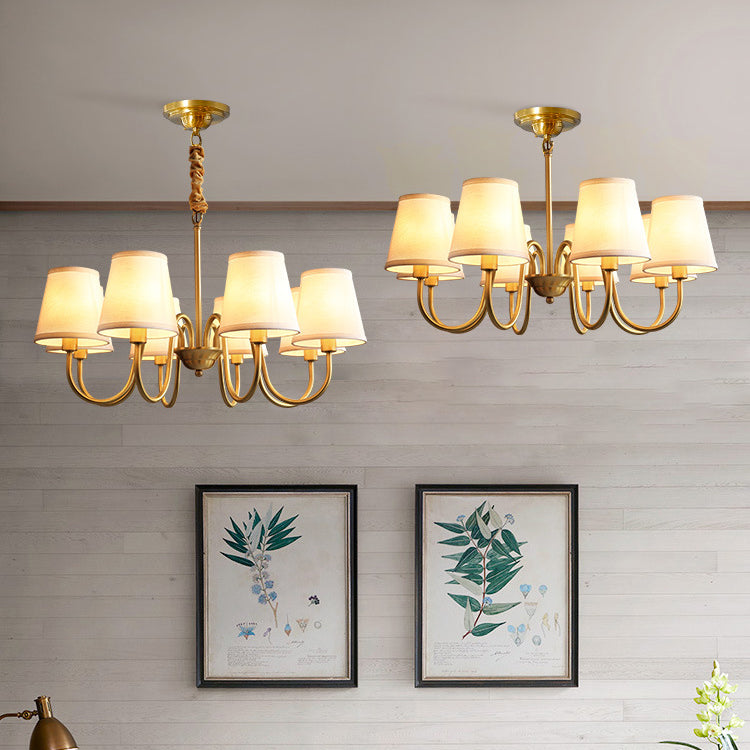 Traditional Vintage Branch Bend Round Fabric Brass 3/5/6/8/10 Light Chandelier For Living Room