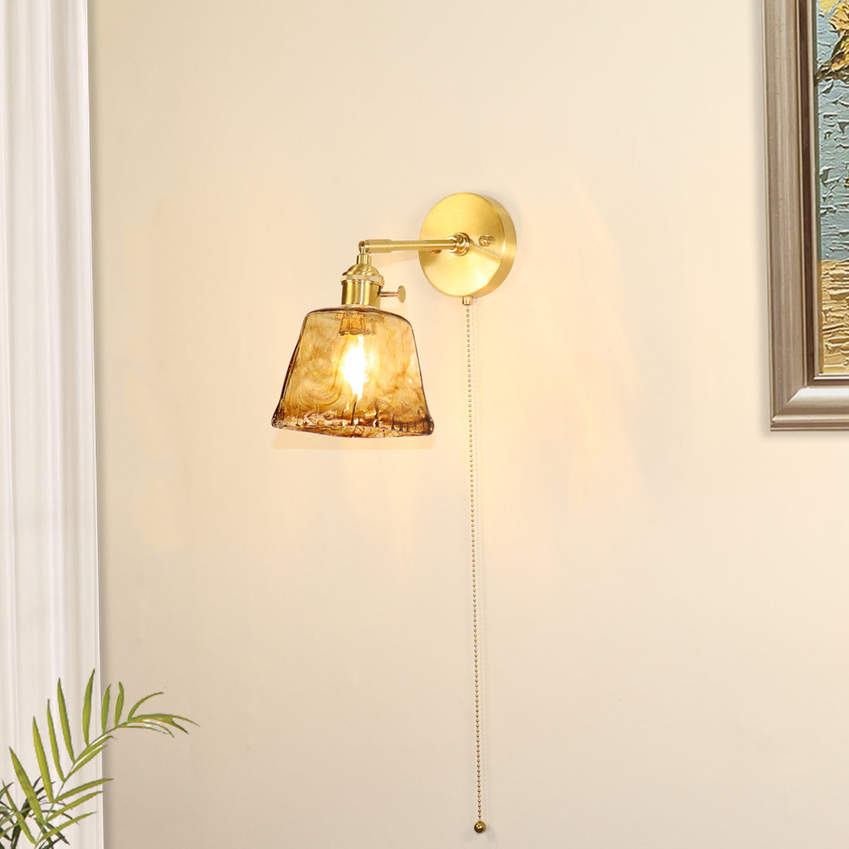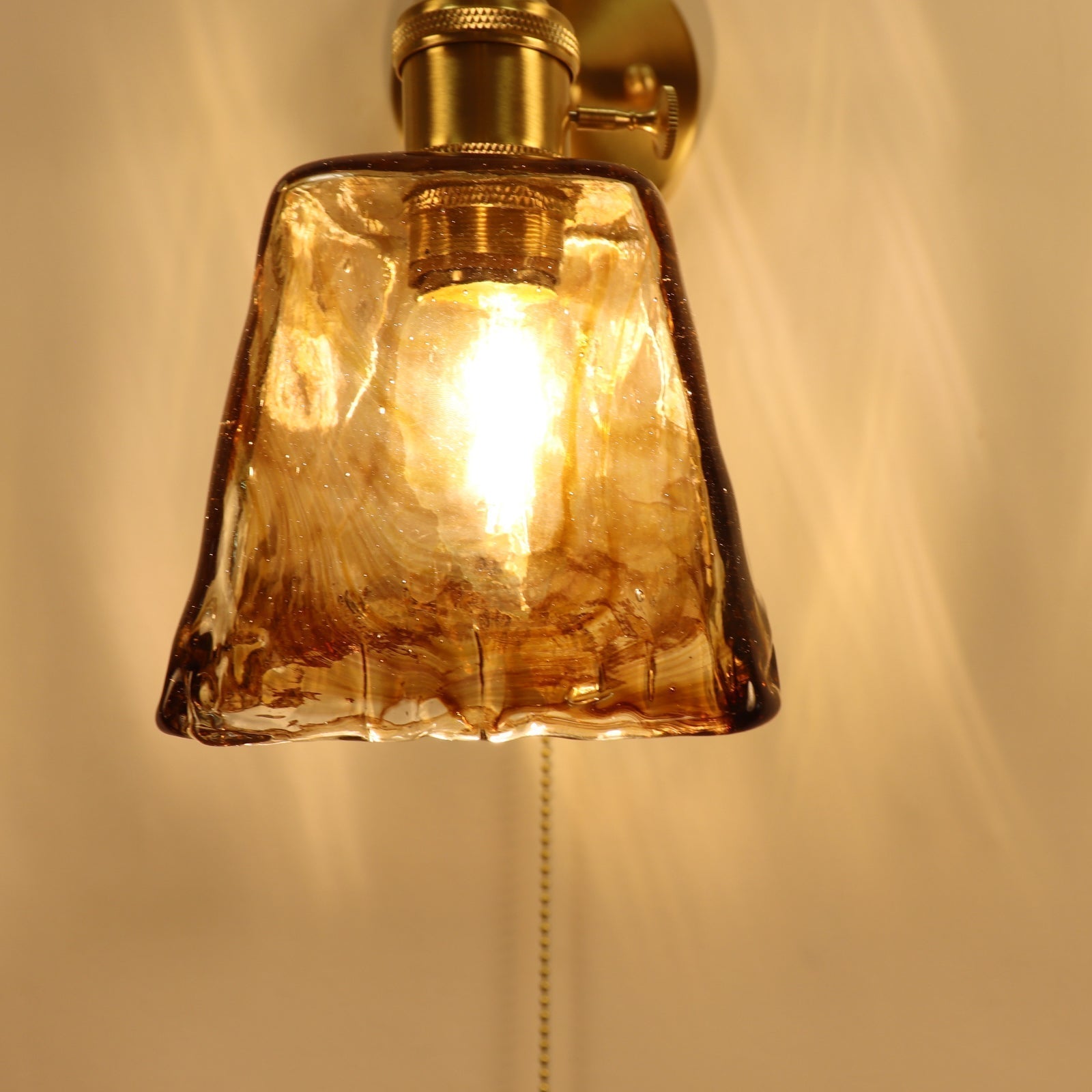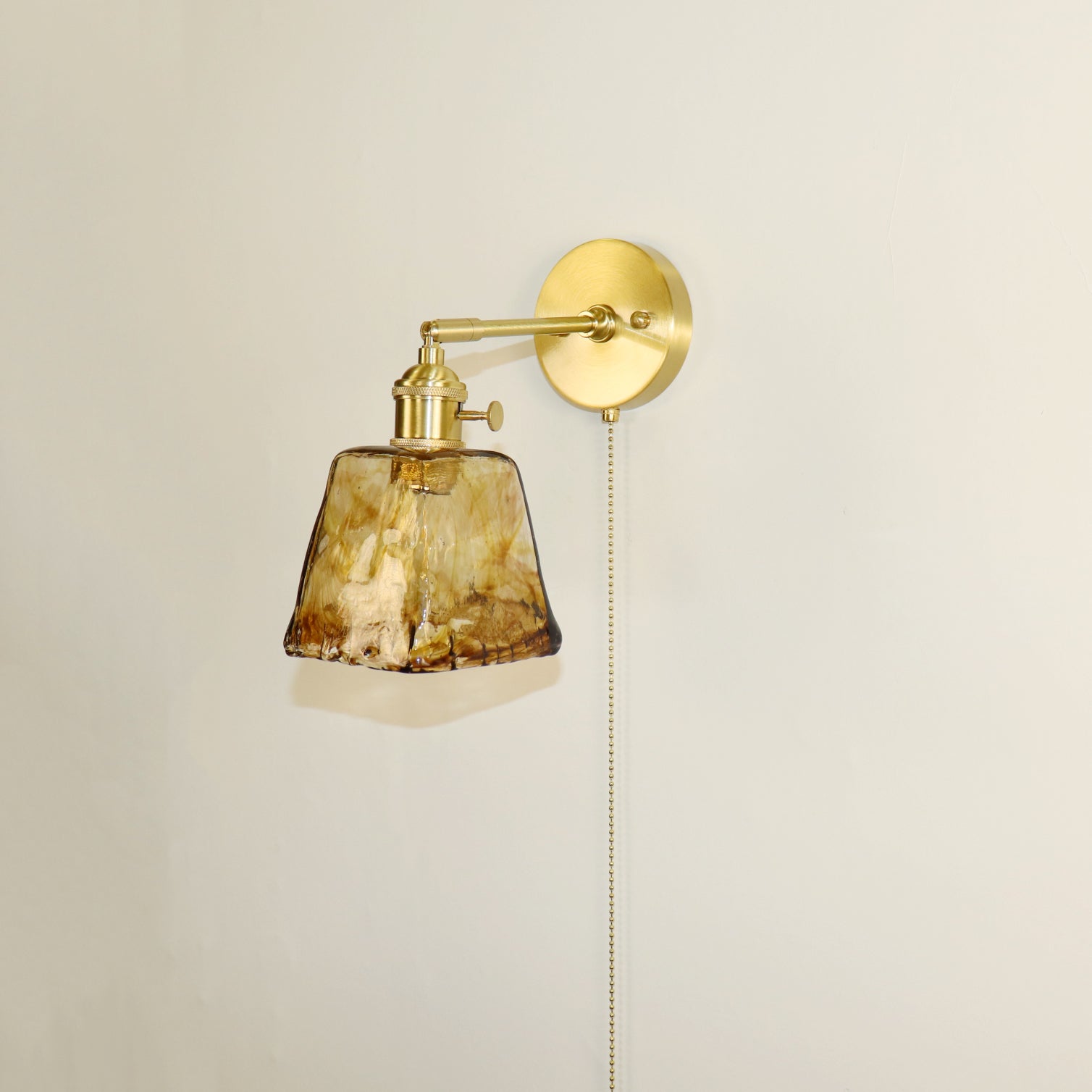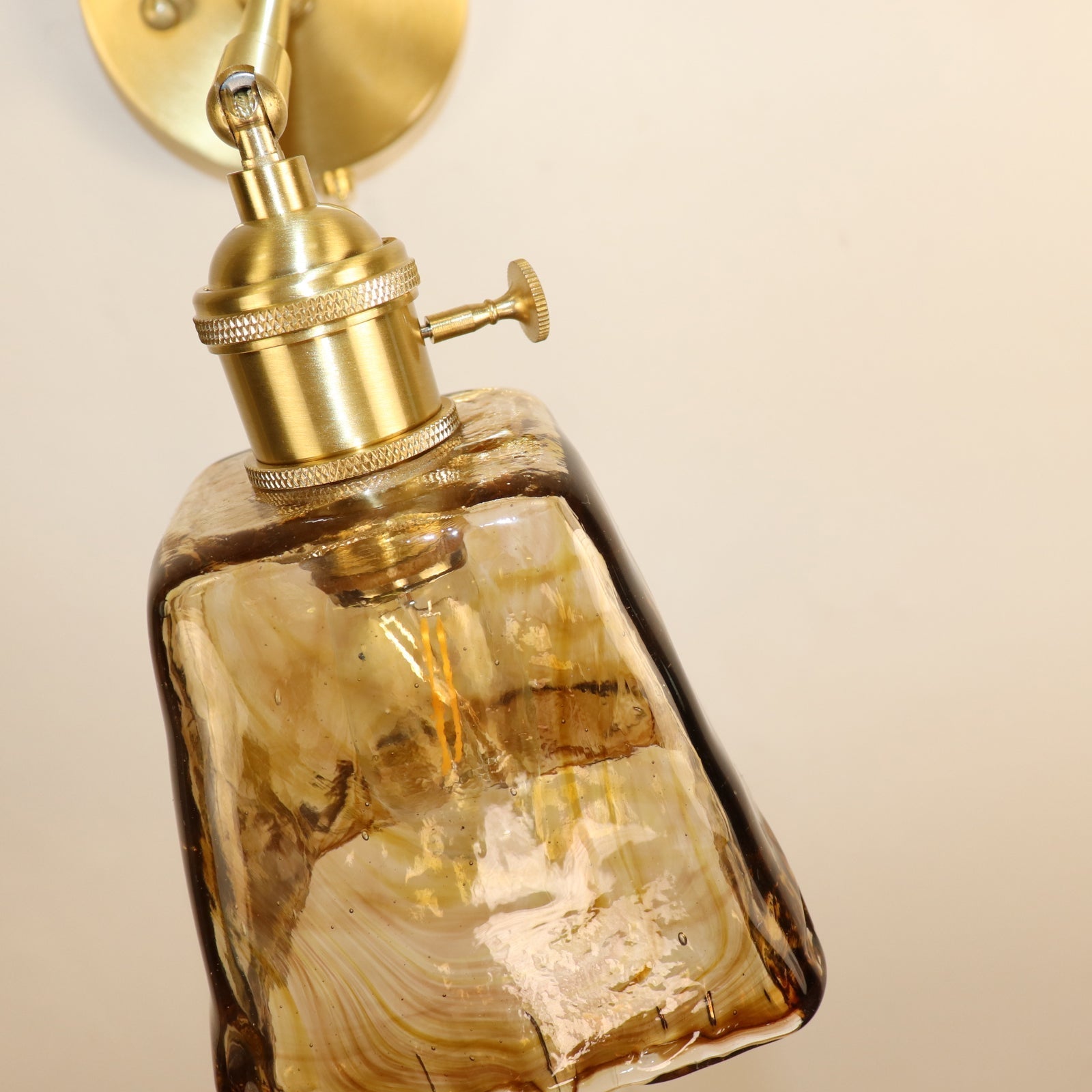 Traditional Vintage Brass Amber Square Glass Shade 1-Light Wall Sconce Lamp For Living Room