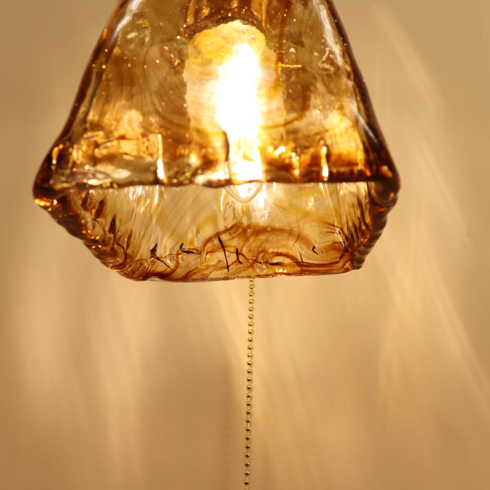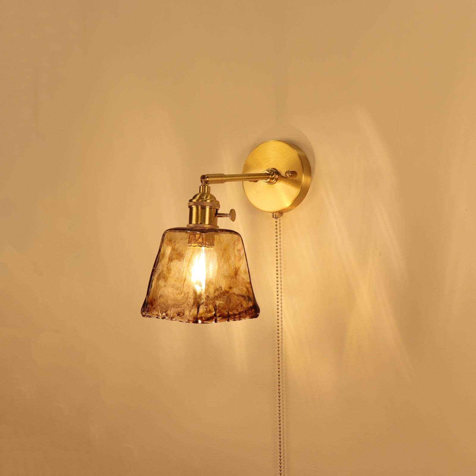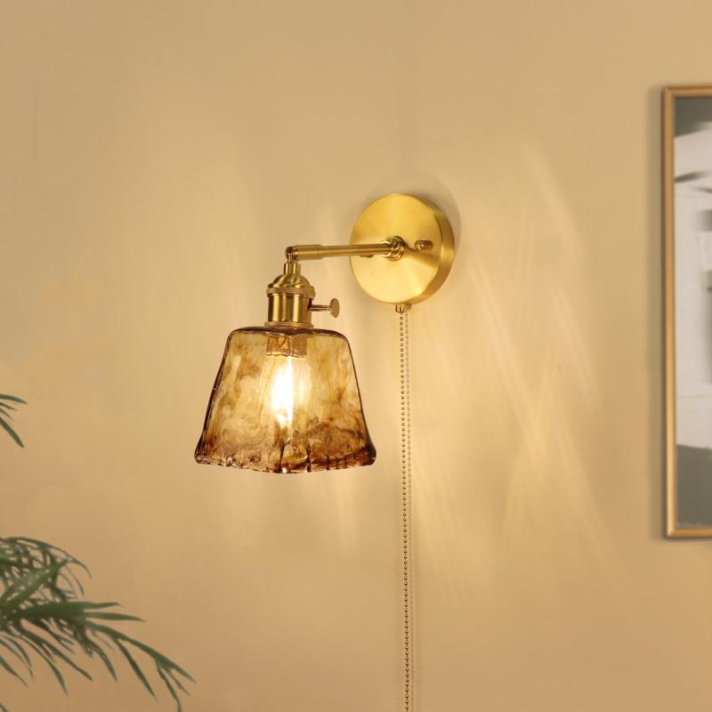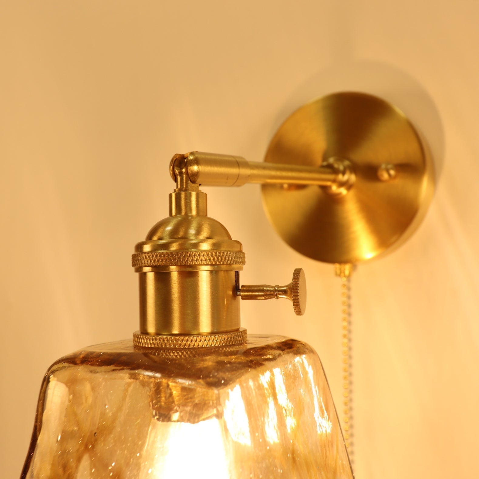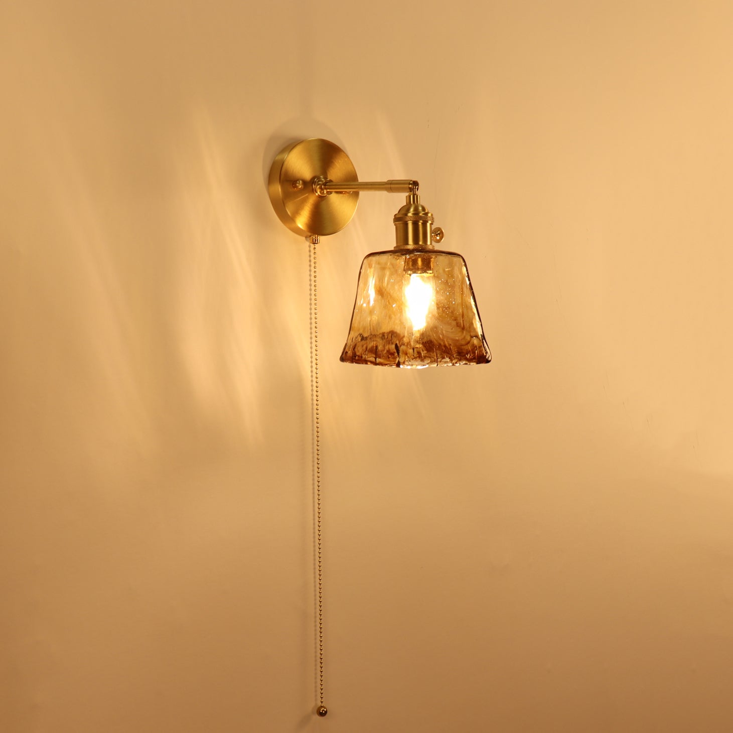 Traditional Vintage Brass Amber Square Glass Shade 1-Light Wall Sconce Lamp For Living Room