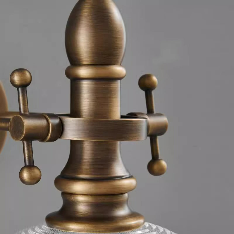Bring vintage elegance to your bedside with this traditional wall sconce, crafted from antique brass and glass. The flared textured glass shade and 180° adjustable design offer both visual appeal and directional lighting for reading or relaxing.