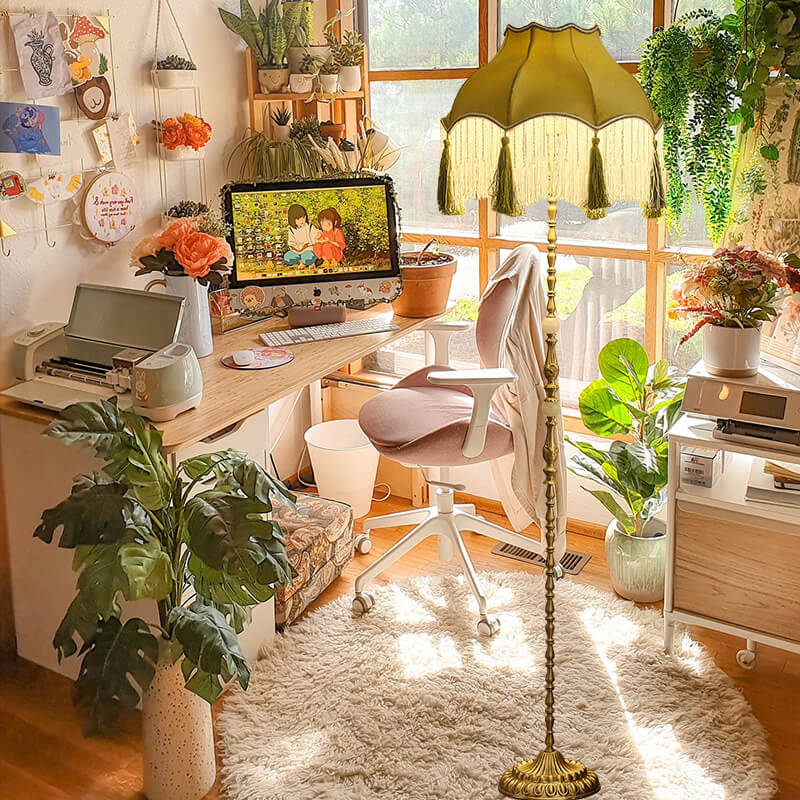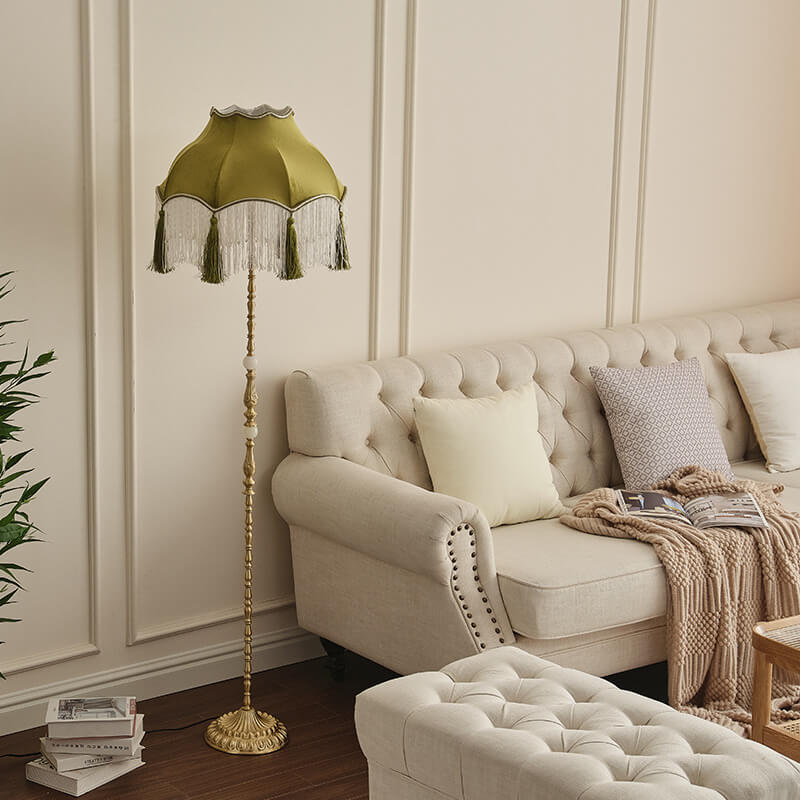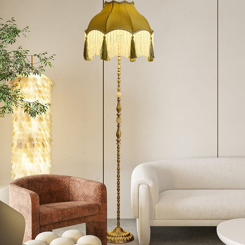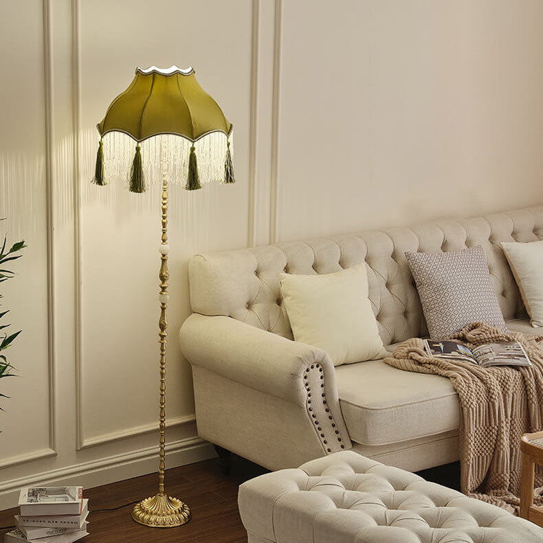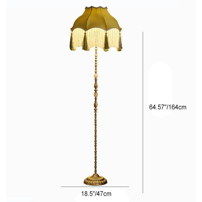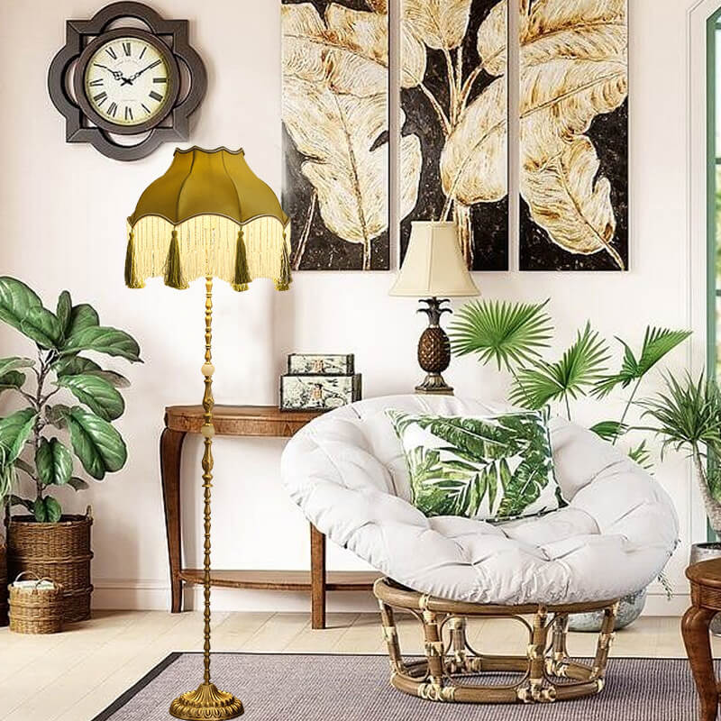 Traditional Vintage Brass Umbrella Tassels 1-Light Standing Floor Lamp For Living Room