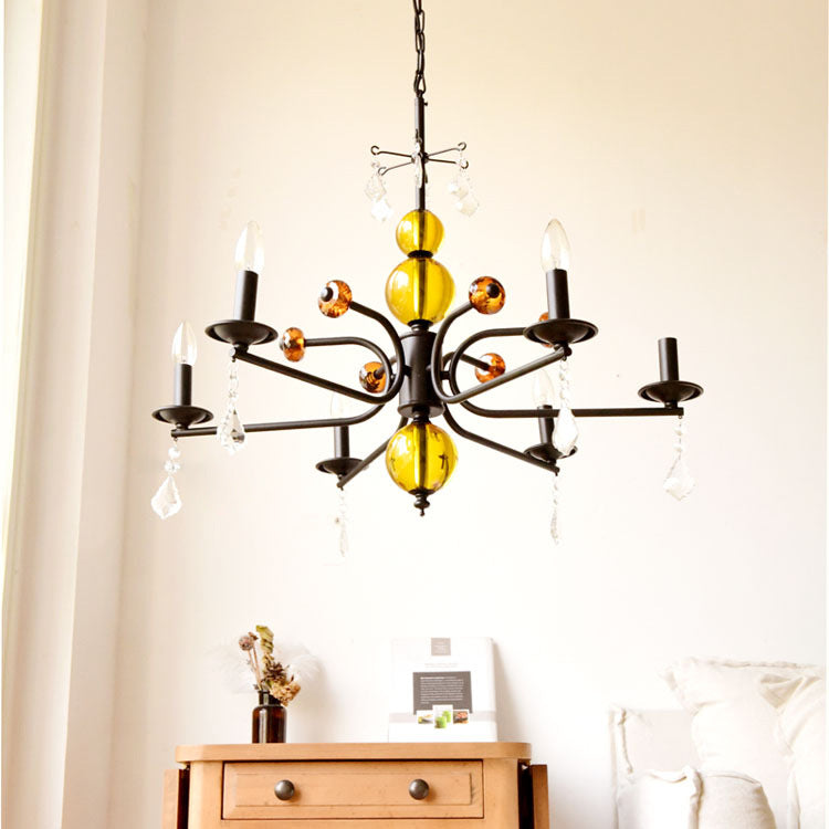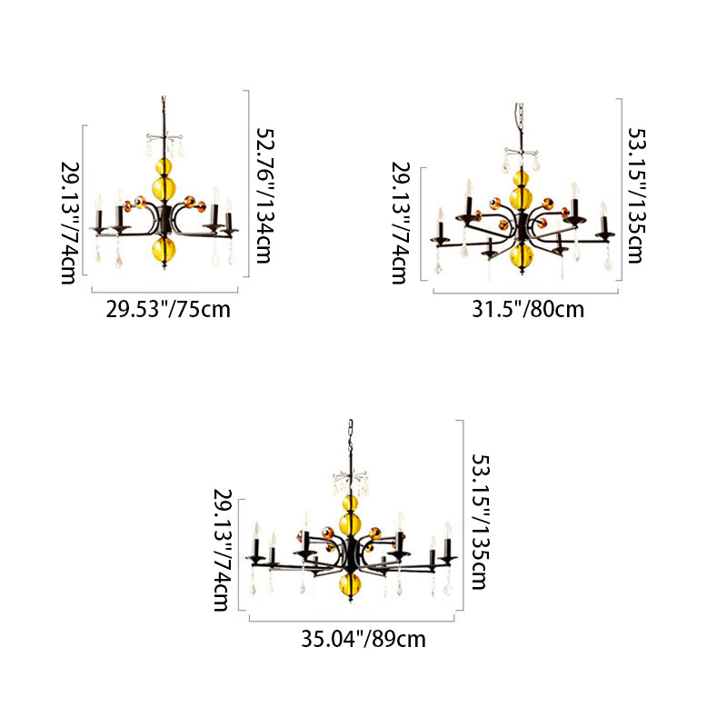 Traditional Vintage Candle Round Orb Iron Crystal 5/6/8 Light Chandelier For Living Room