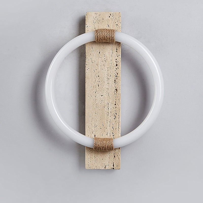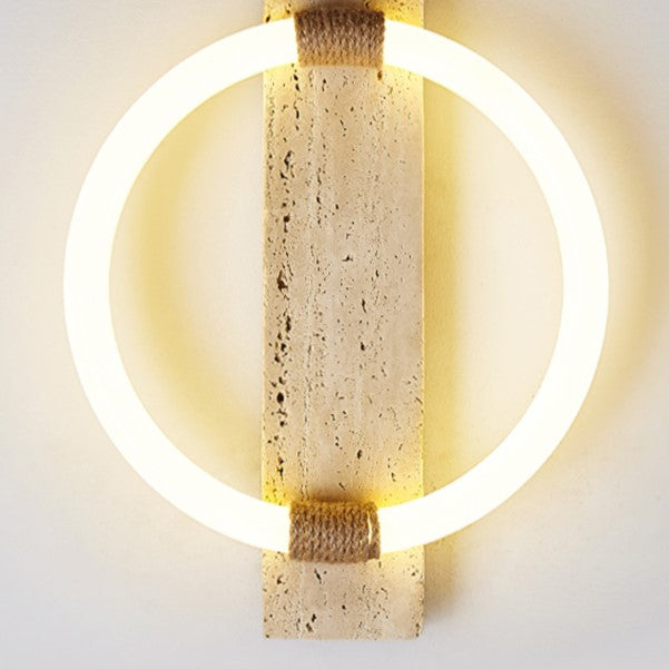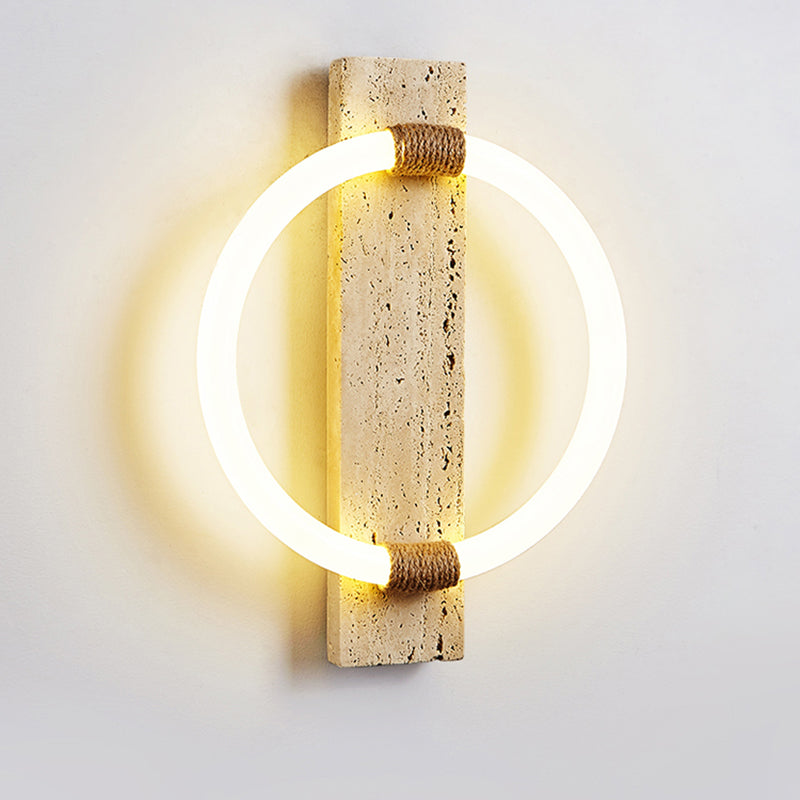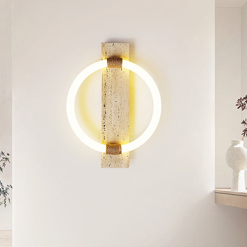 Traditional Vintage Circle Travertine Acrylic Hemp Rope LED Wall Sconce Lamp For Living Room
