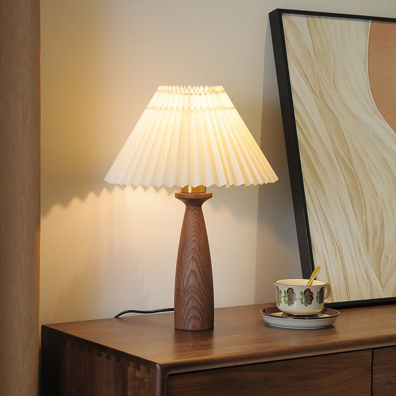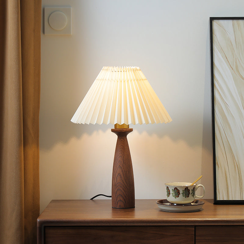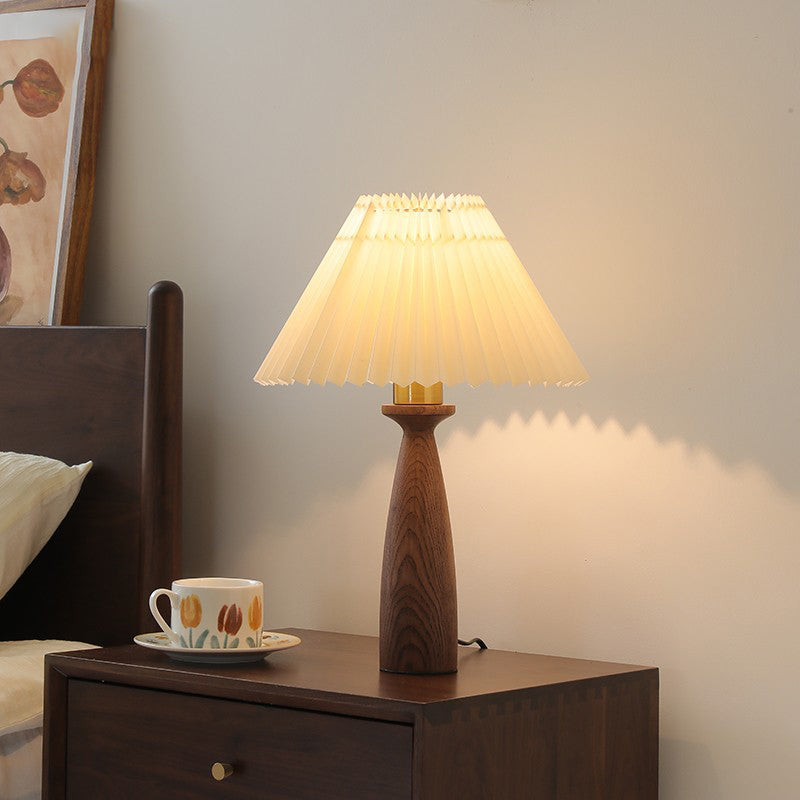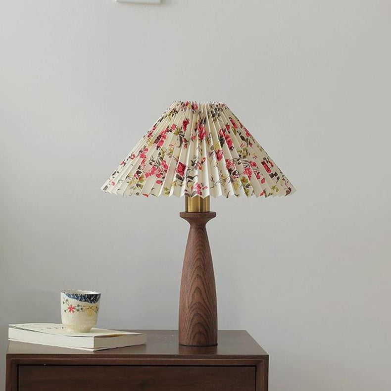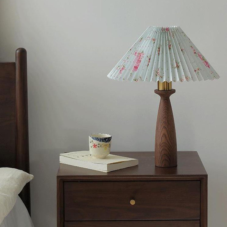 Traditional Vintage Conical Floral Wood Fabric 1-Light Table Lamp For Bedroom