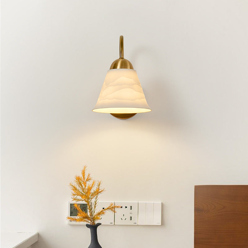 Traditional Vintage Conical Round Distressed Ceramic Rubberwood Iron 1-Light Wall Sconce Lamp For Living Room