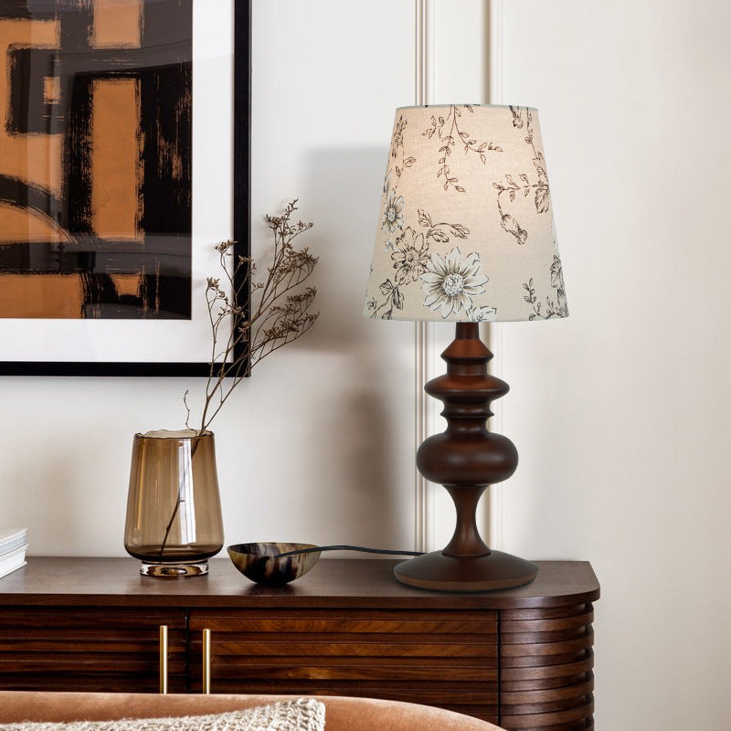 Traditional Vintage Crushed Flower Round Orb Fabric Ceramic 1-Light Table Lamp For Living Room