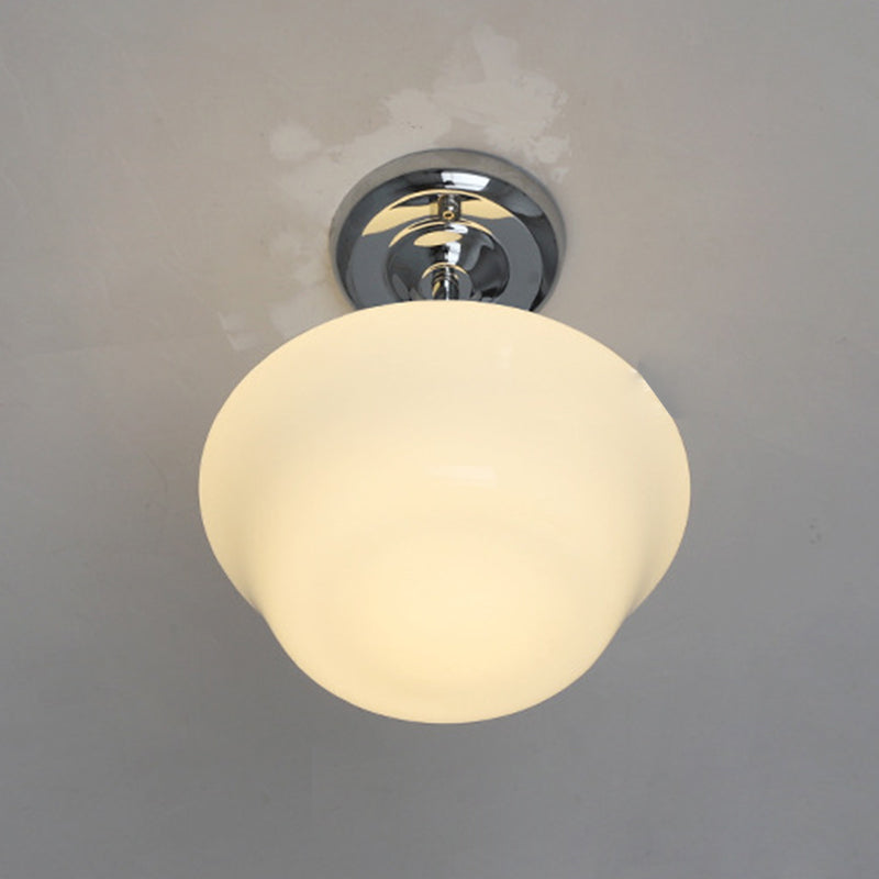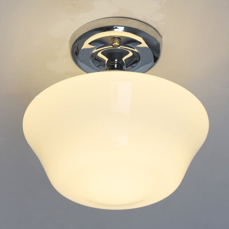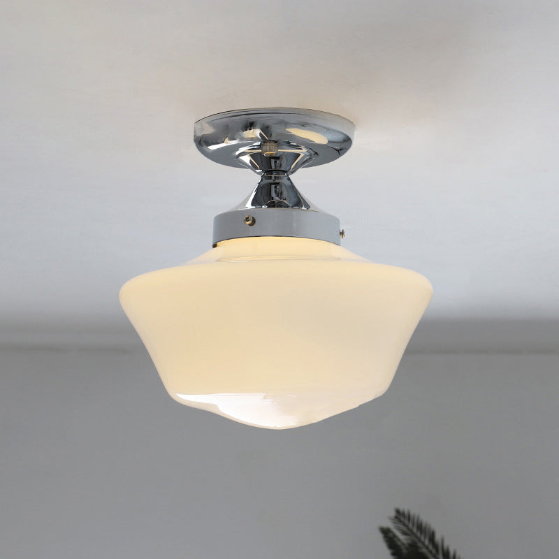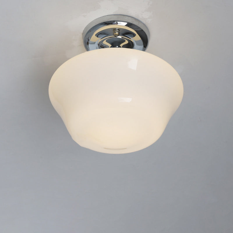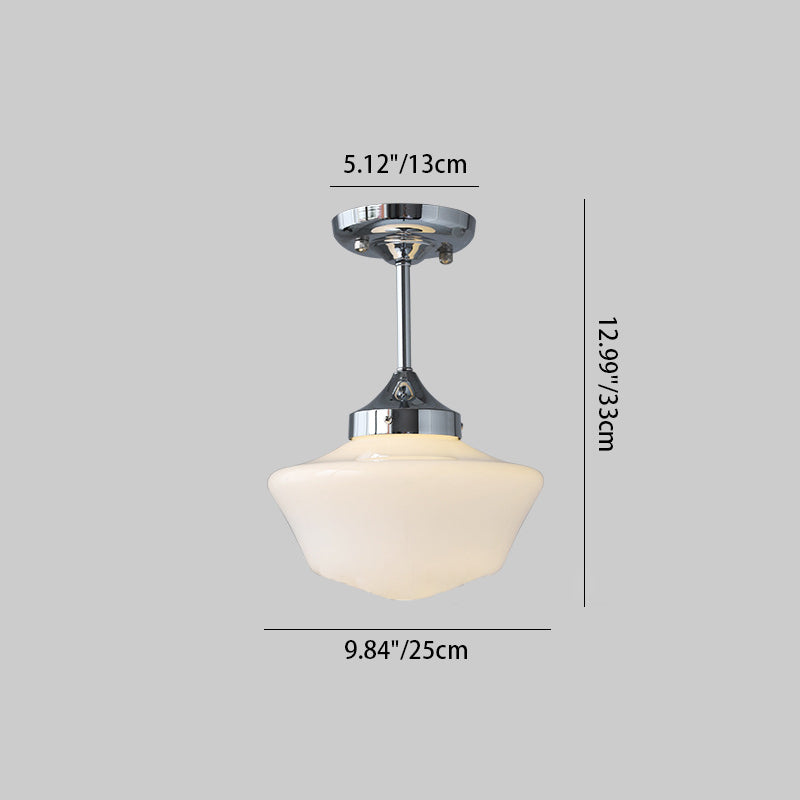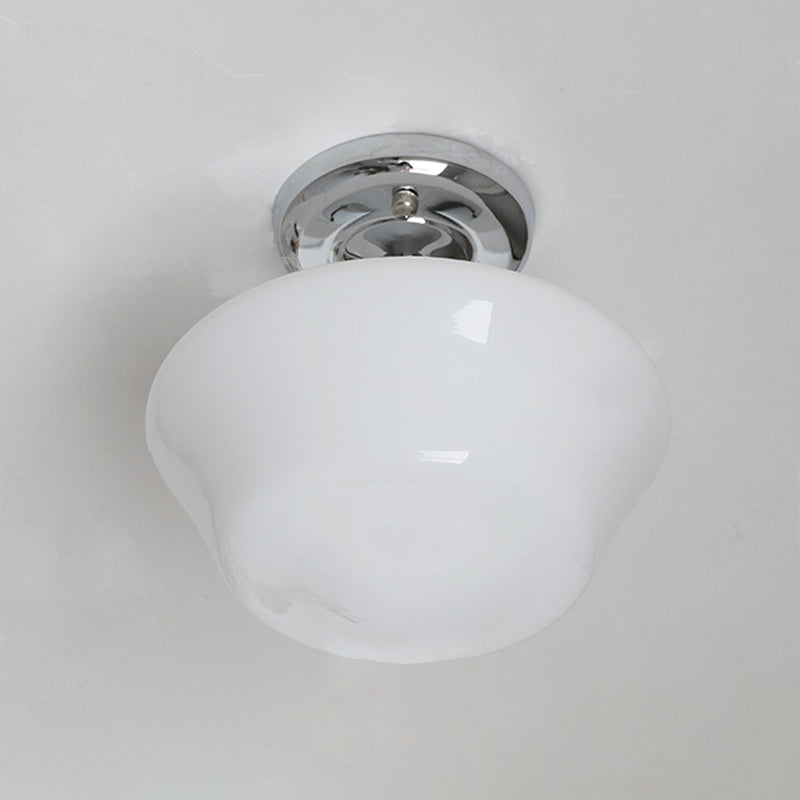 Traditional Vintage Curved Flared Cream Glass Iron 1-Light Semi-Flush Mount Ceiling Light For Bedroom