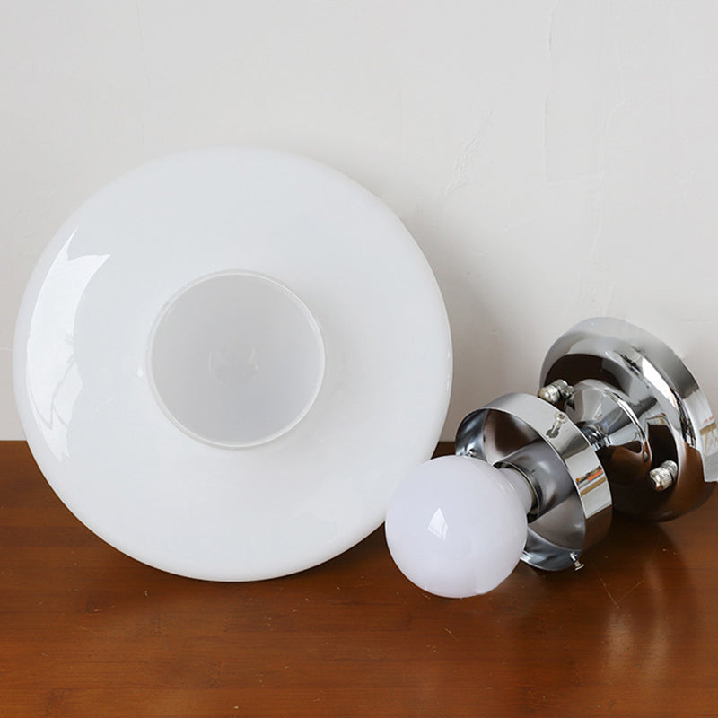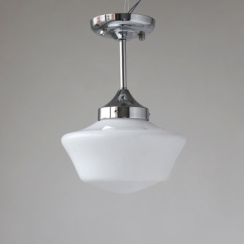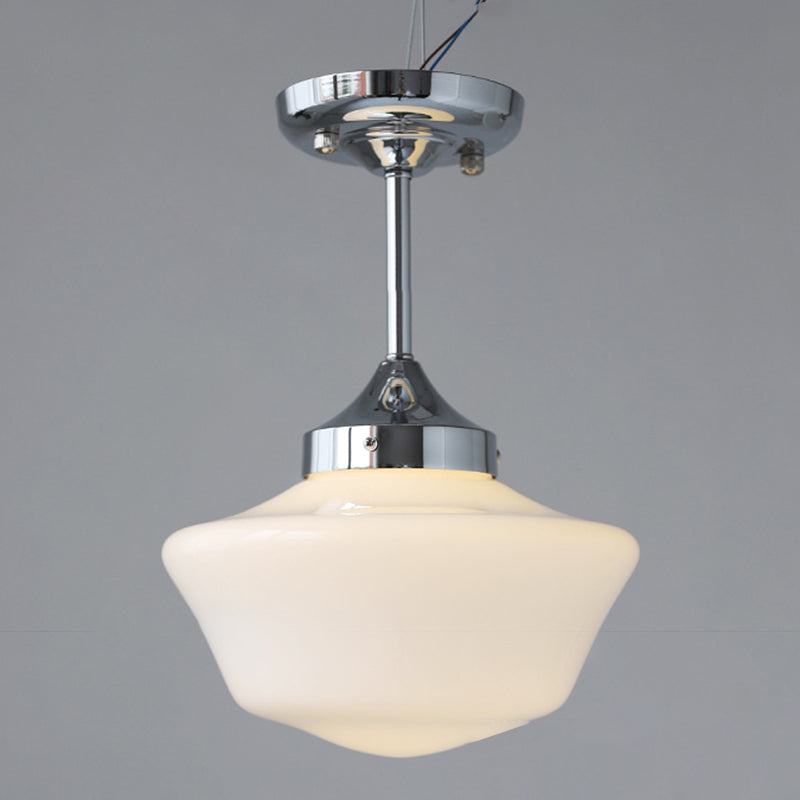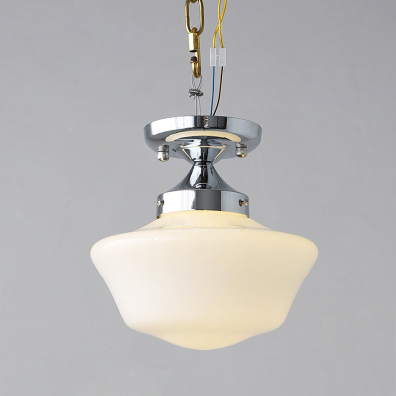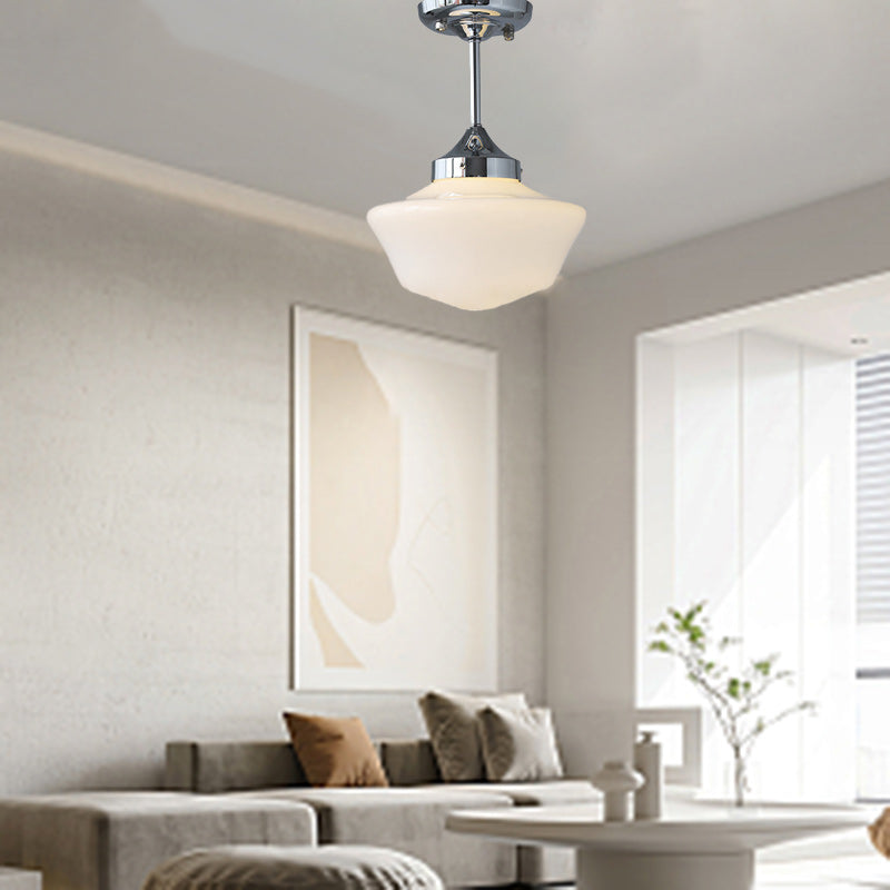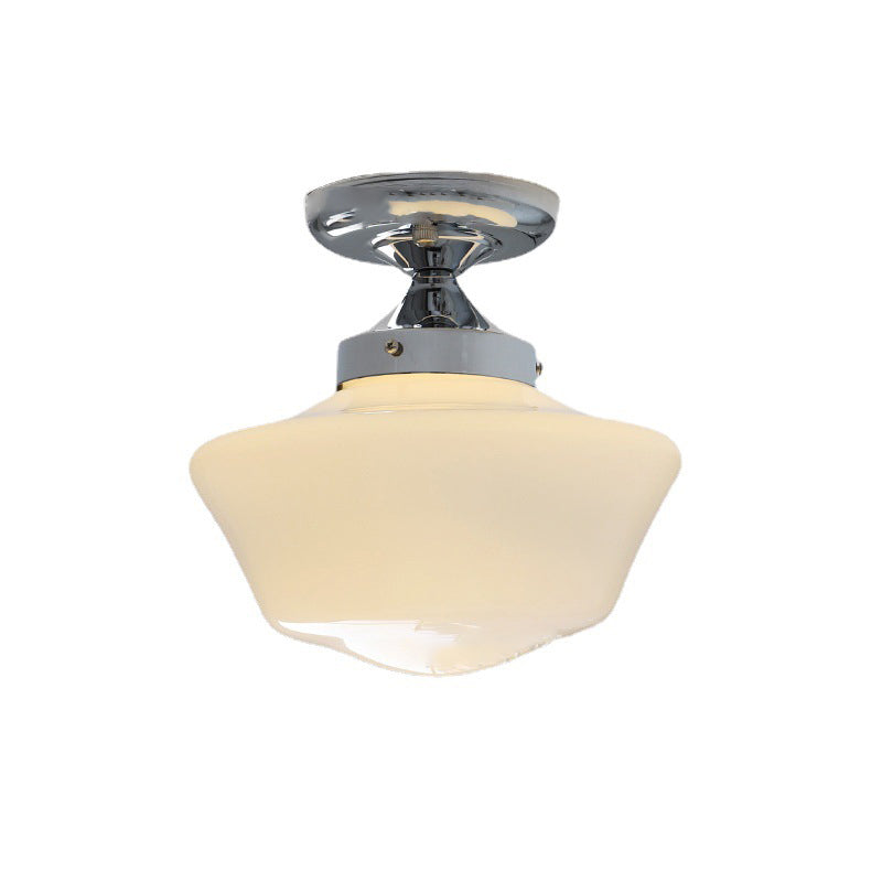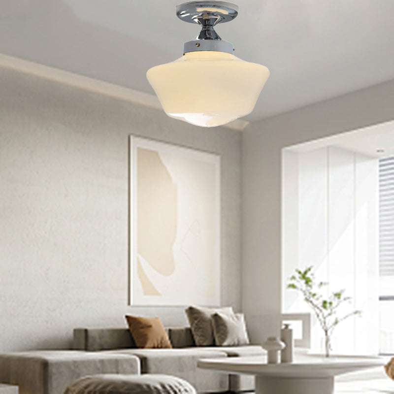 Traditional Vintage Curved Flared Cream Glass Iron 1-Light Semi-Flush Mount Ceiling Light For Bedroom