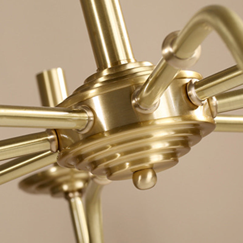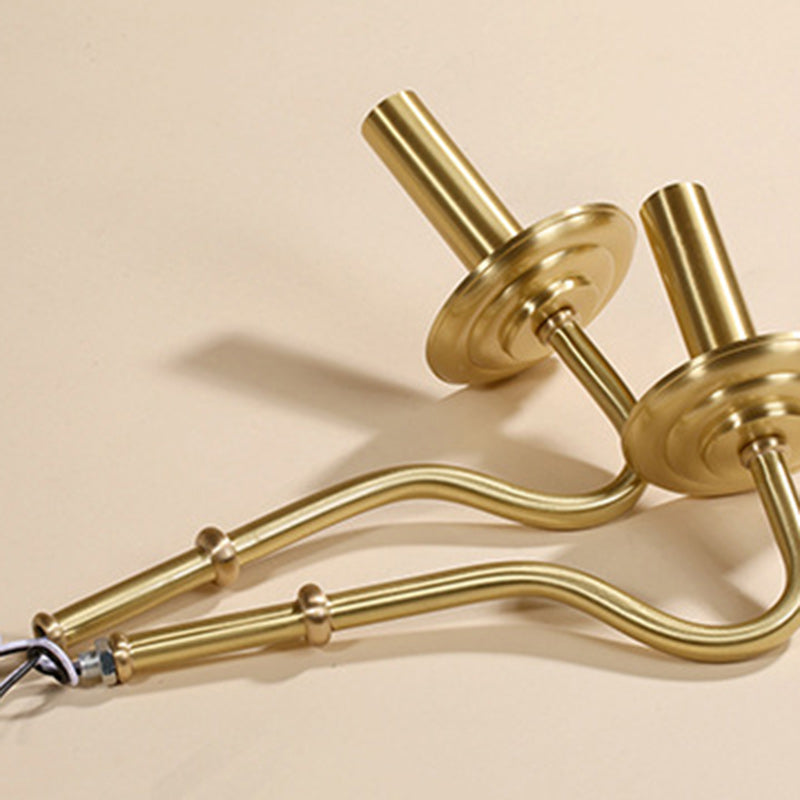 Traditional Vintage Curved Line Branch Cylinder Fabric Copper 4/6/8 Light Chandelier For Living Room