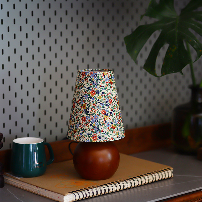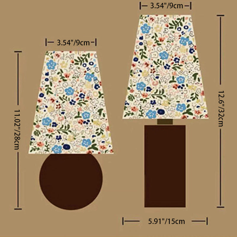 Traditional Vintage Cylinder Ball Round Table Floral Solid Wood Fabric 1-Light Table Lamp For Bedroom