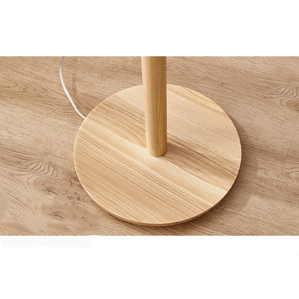 Traditional Vintage Cylinder Cone Pleated Cotton Linen Ash Wood Brass 1-Light Standing Floor Lamp For Living Room
