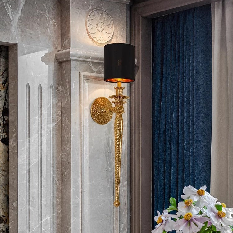 Traditional Vintage Cylinder Long Leaf Vein Full Copper Fabric 1-Light Wall Sconce Lamp For Living Room
