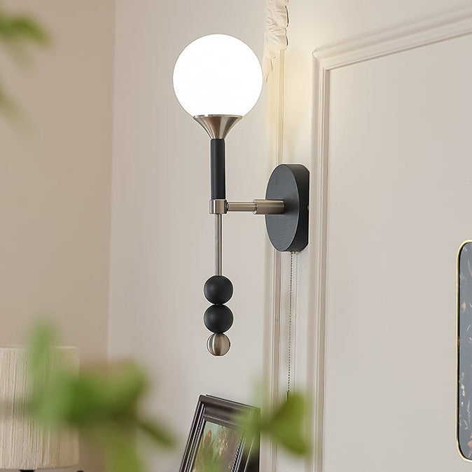 Traditional Vintage Cylinder Orb Beads Alloy Wood Glass Shade 1-Light Wall Sconce Lamp For Living Room