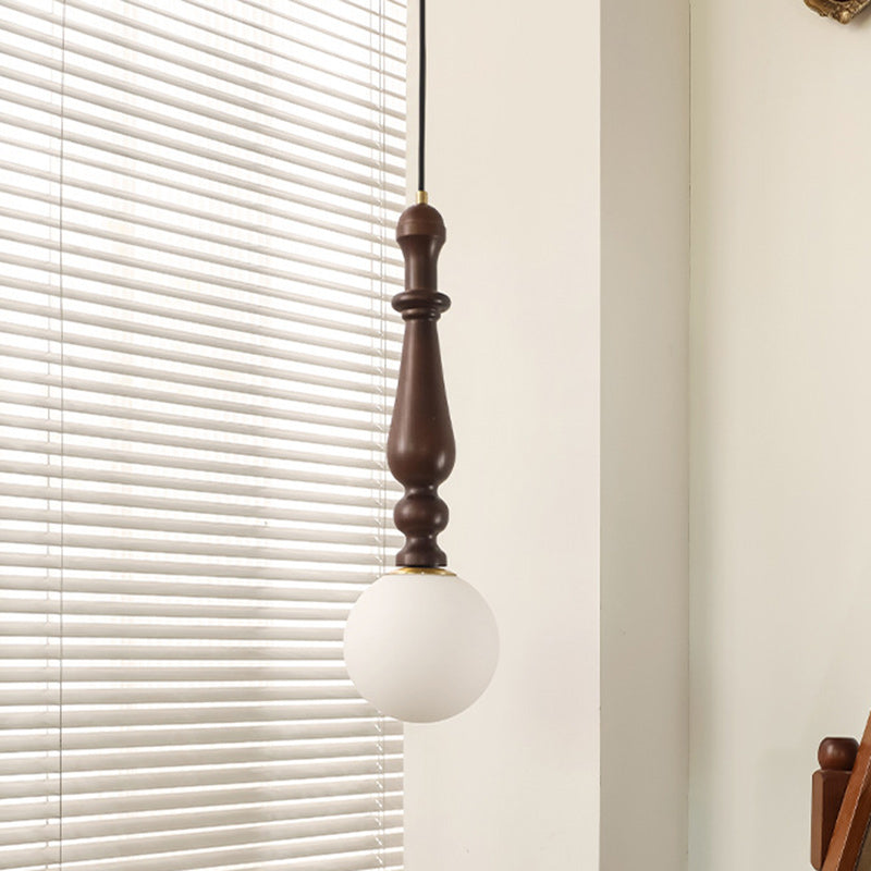 Traditional Vintage Cylinder Orb Wood Aluminum Frame Glass 1-Light Pendant Light For Living Room