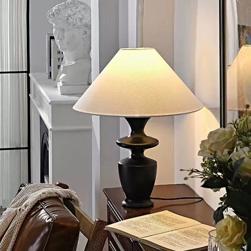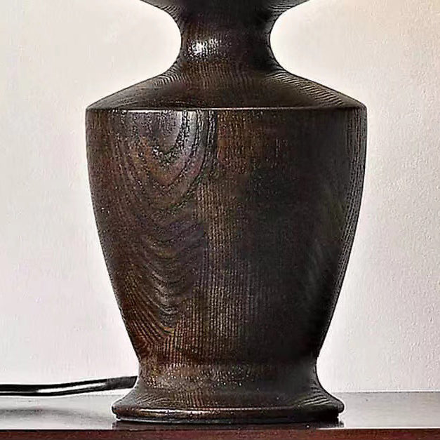 Traditional Vintage Defender Base Trapezoidal Fabric Shade Wood 1-Light Table Lamp For Bedroom