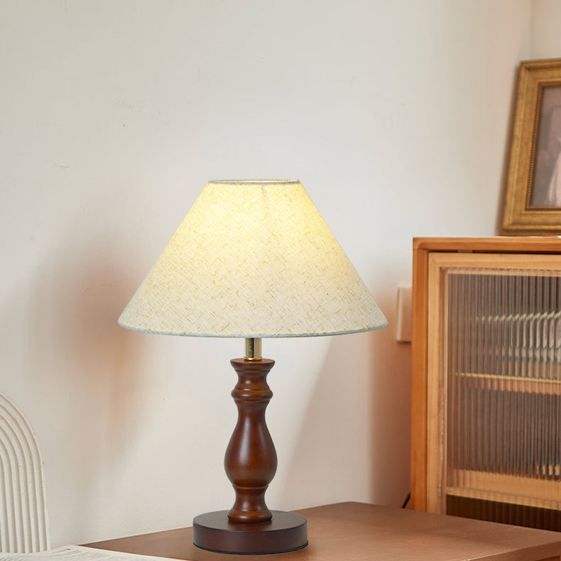 Traditional Vintage Drum Floral Fabric Wood 1-Light Table Lamp For Living Room