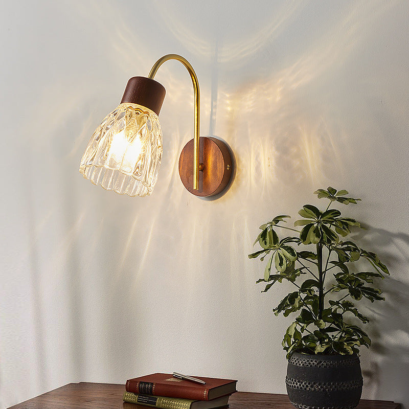 Traditional Vintage Drum Iron Wood Glass 1-Light Wall Sconce Lamp For Living Room