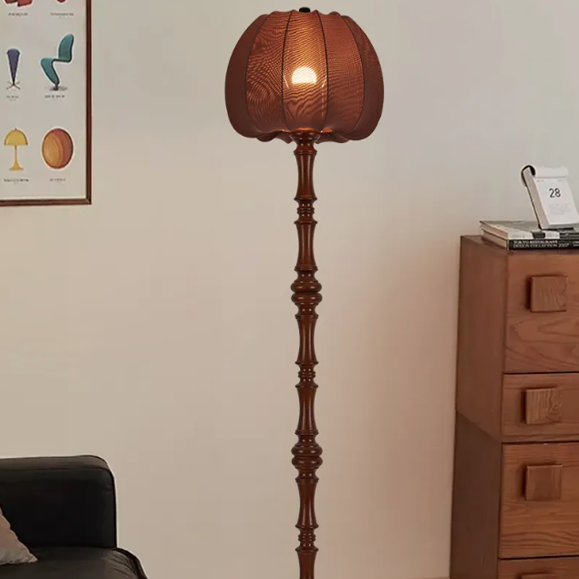Traditional Vintage Fabric Pumpkin Shade Solid Wood 1-Light Standing Floor Lamp For Bedroom