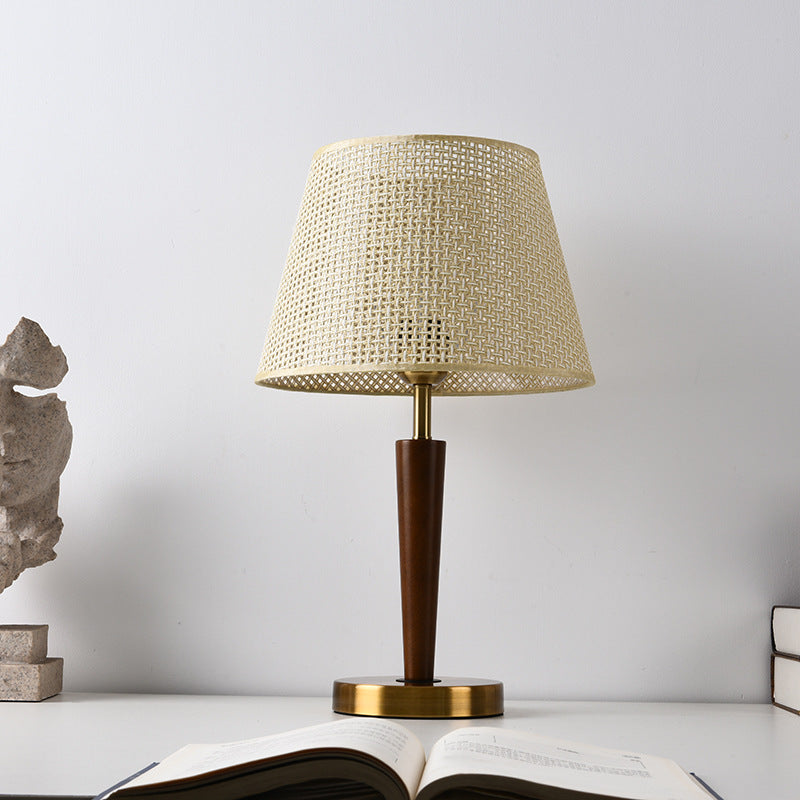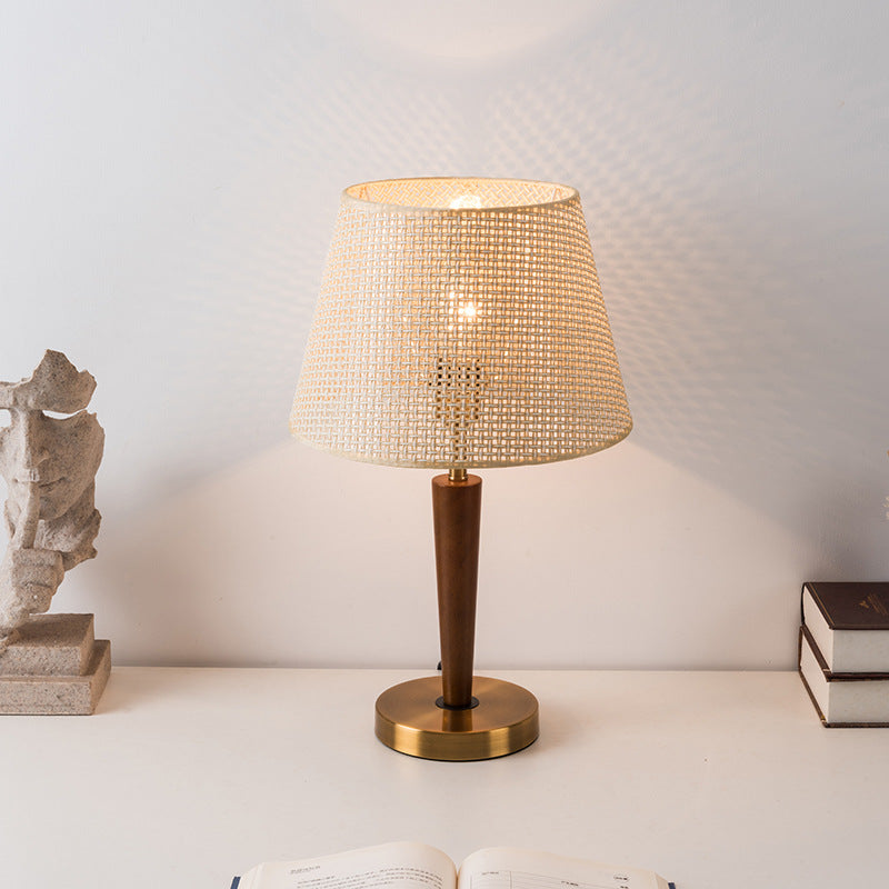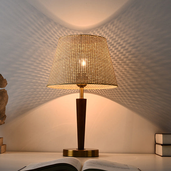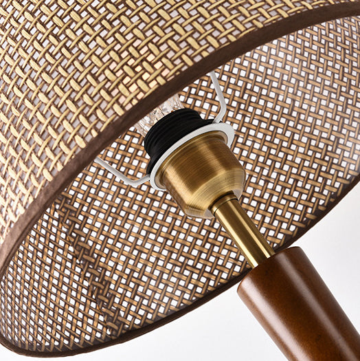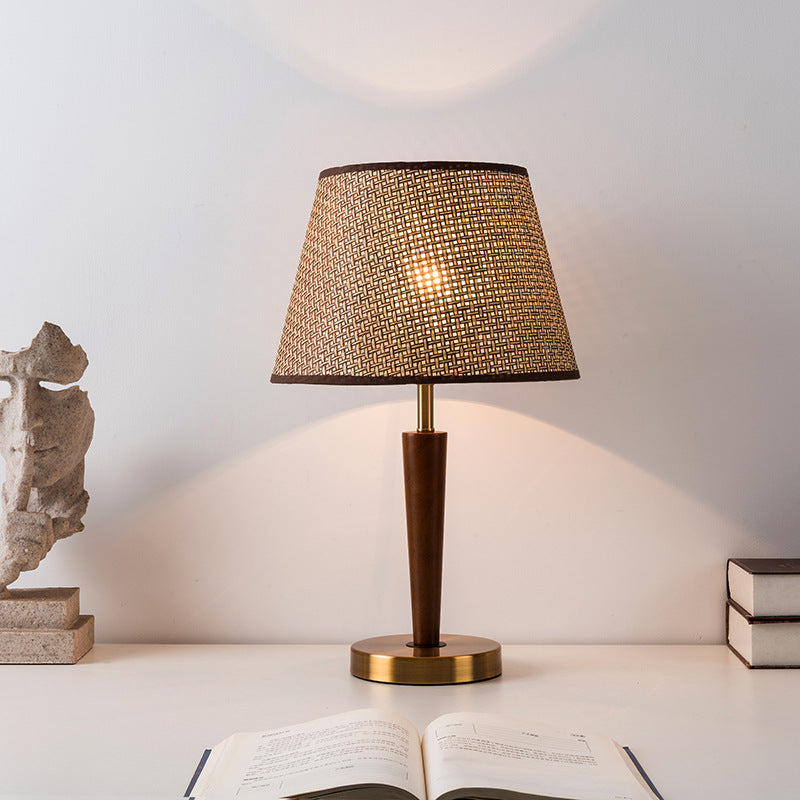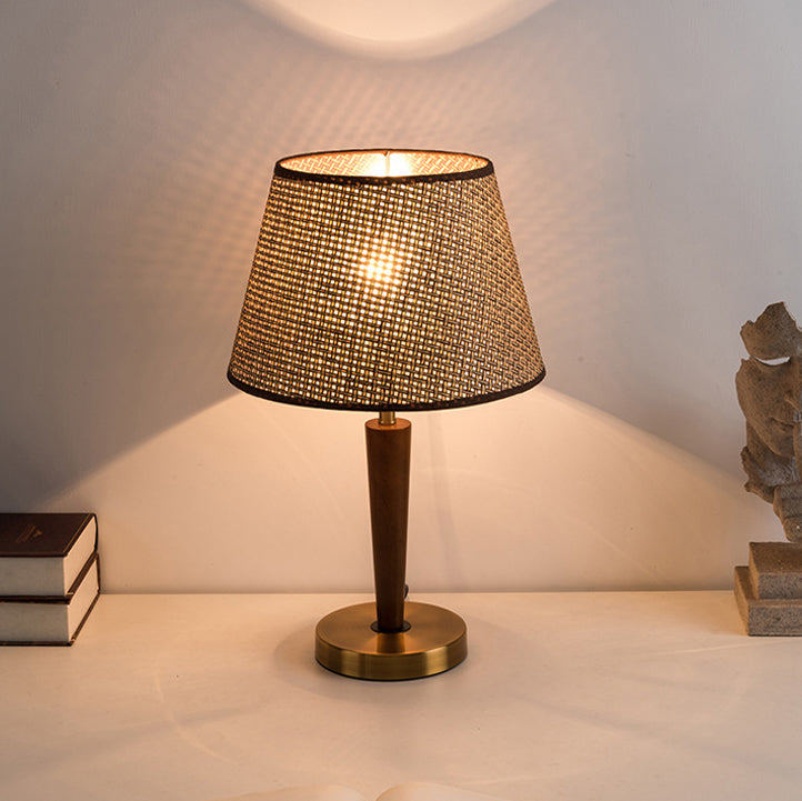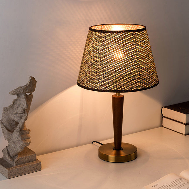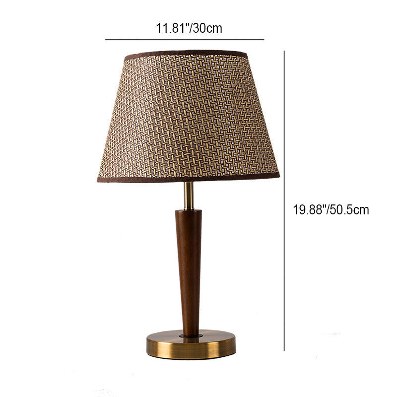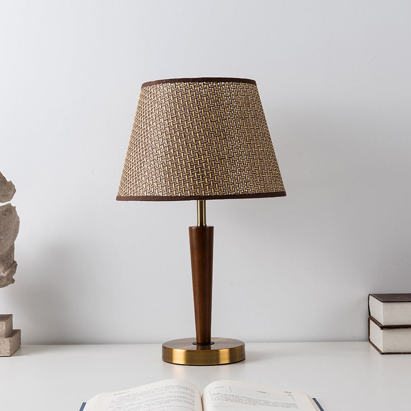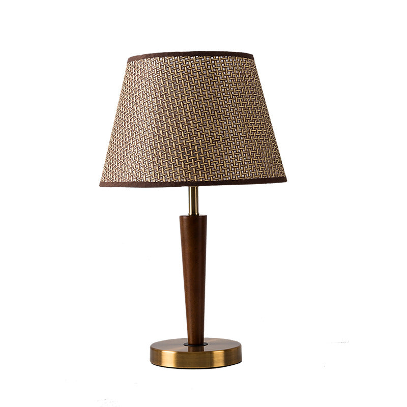 Traditional Vintage Fabric Round Shade Wood Metal Base 1-Light Table Lamp For Bedroom