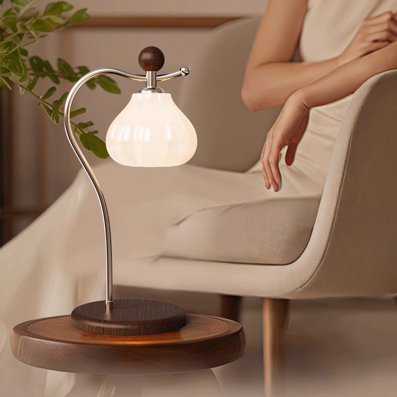 Traditional Vintage Floral Arc Round Cone Wood Iron Glass LED Table Lamp For Bedroom