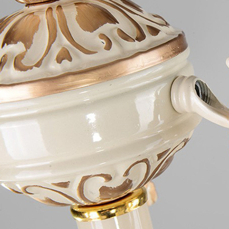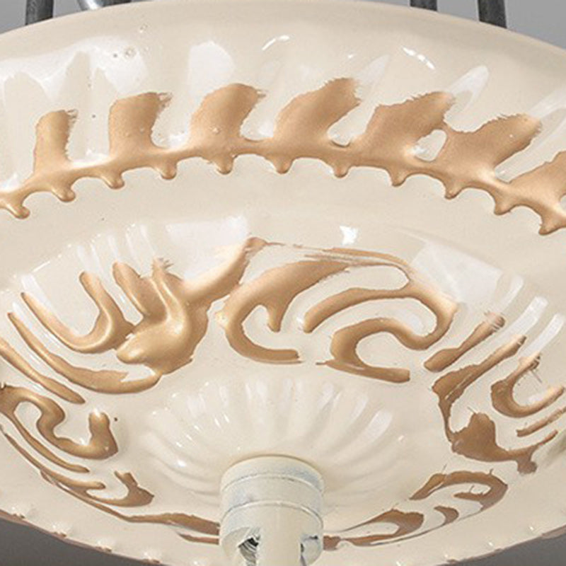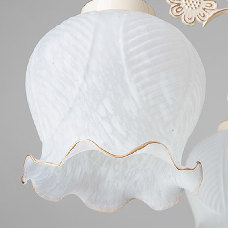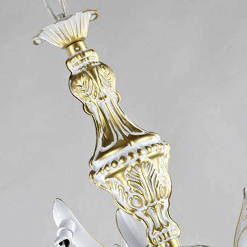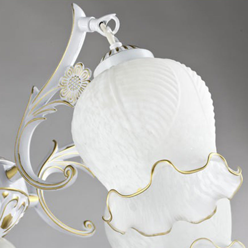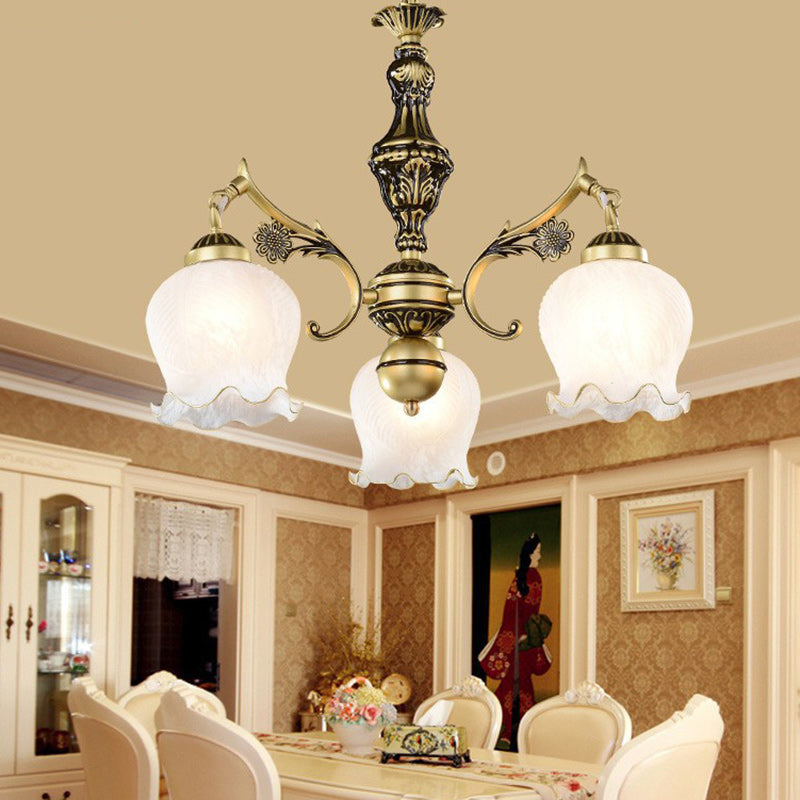Traditional Vintage Floral Branch Round Glass Iron Zinc 3-Light Chandeliers For Living Room