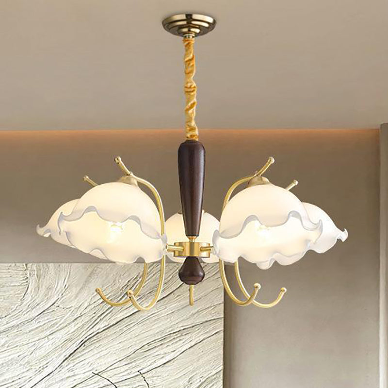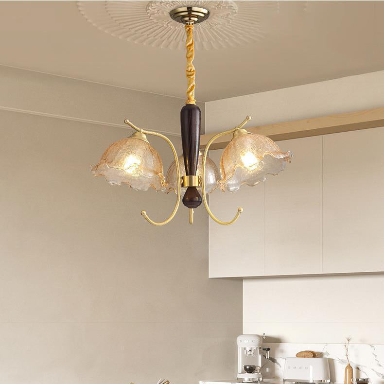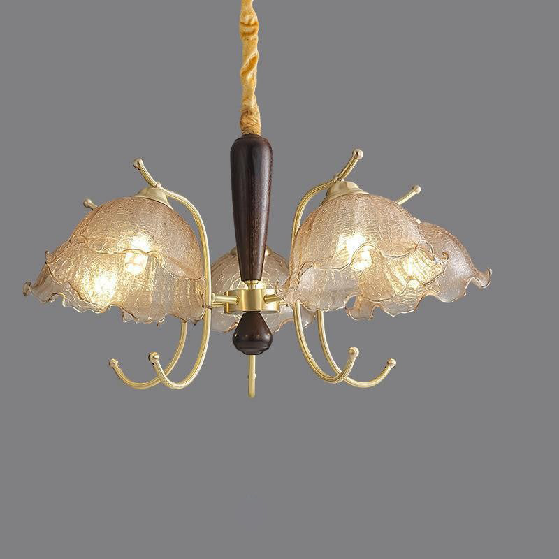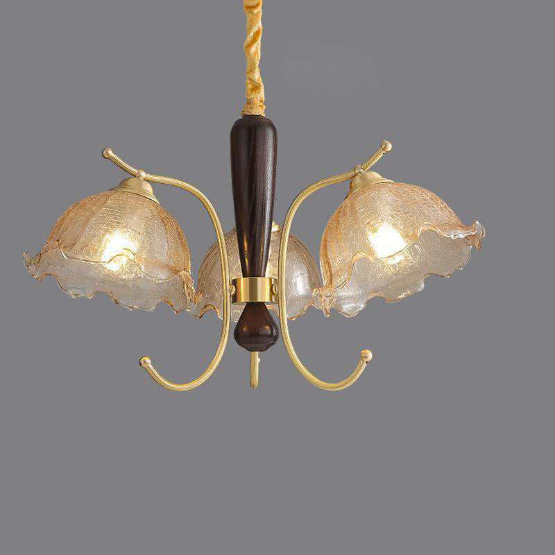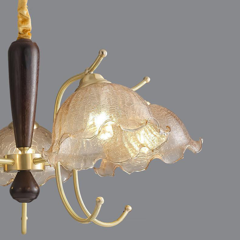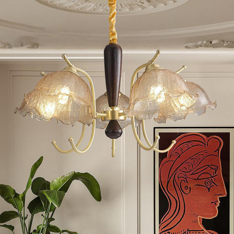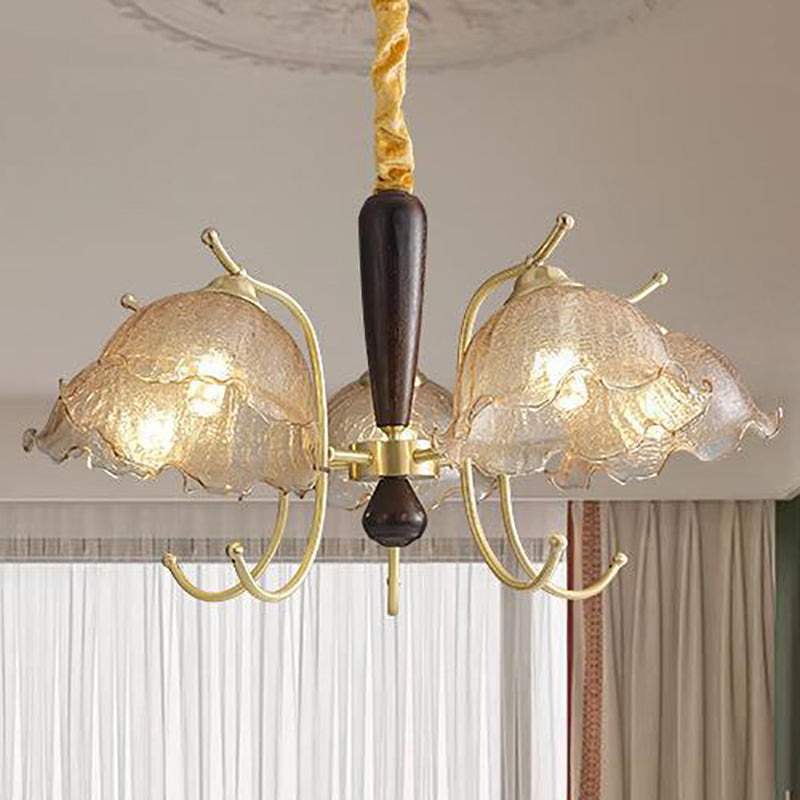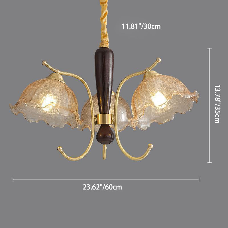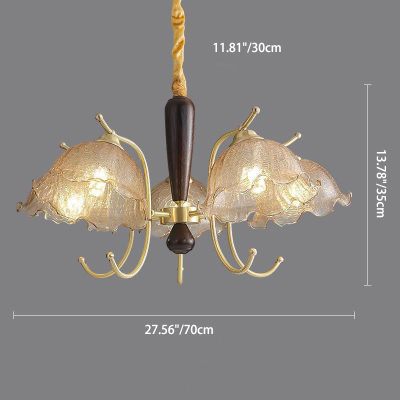 Traditional Vintage Floral Copper Wood Glass 3/5 Light Chandelier For Living Room