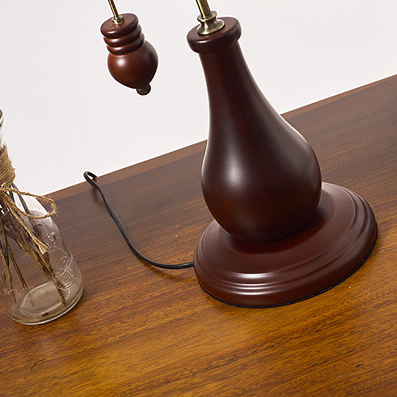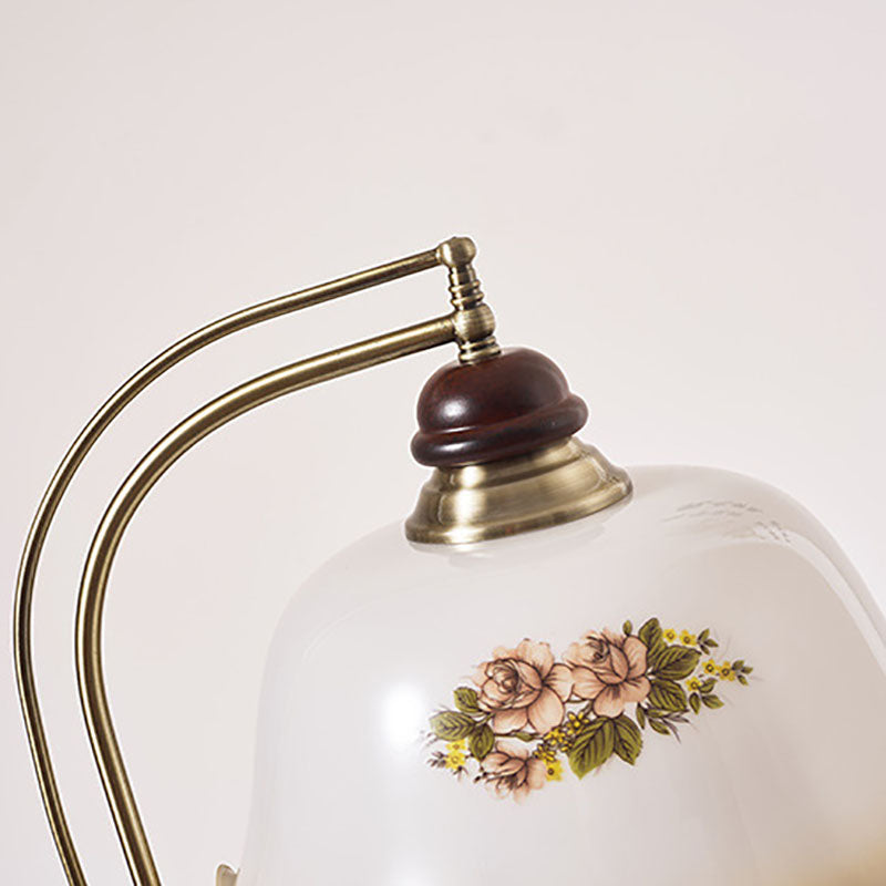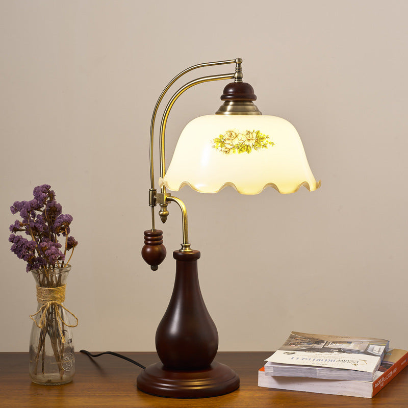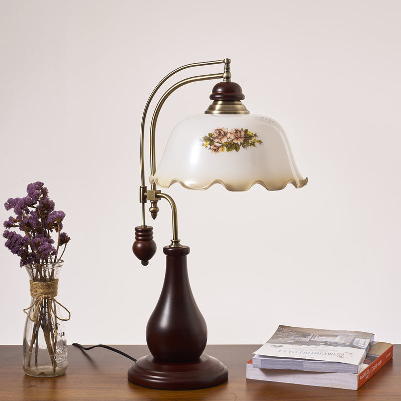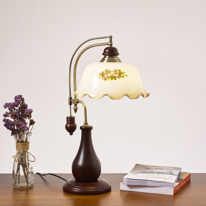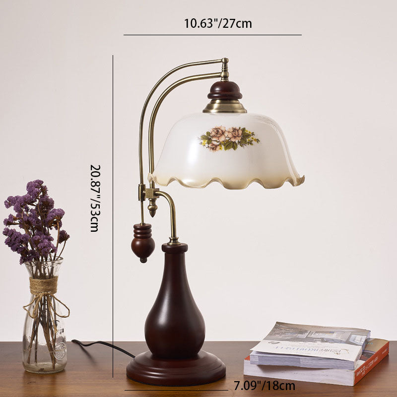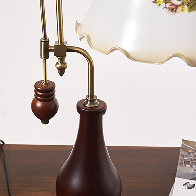 Traditional Vintage Floral Glass Solid Wood Base 1-Light Table Lamp For Bedroom
