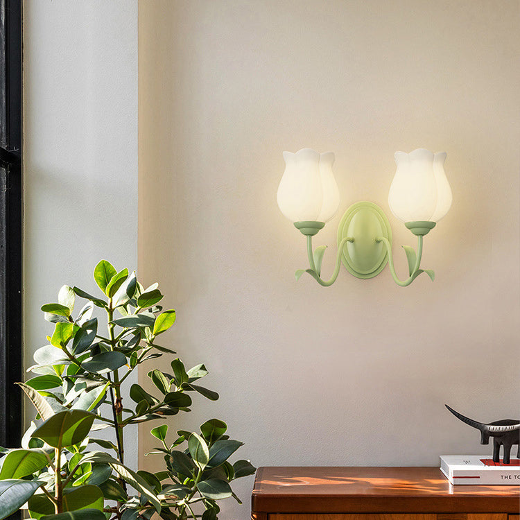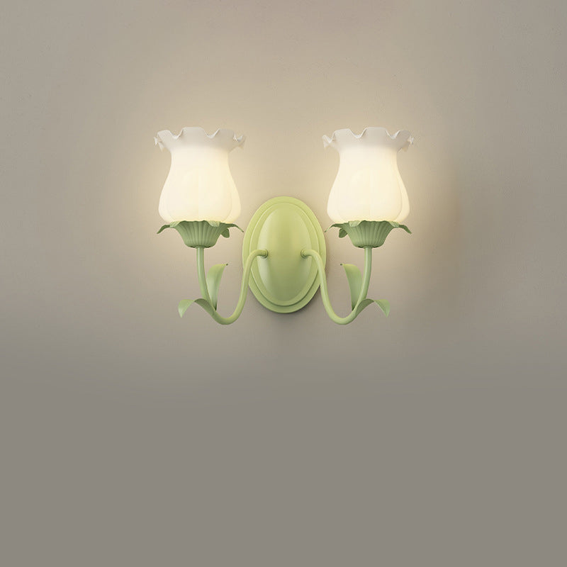 Traditional Vintage Floral Leaf Glass Iron 1/2 Light Wall Sconce Lamp For Living Room