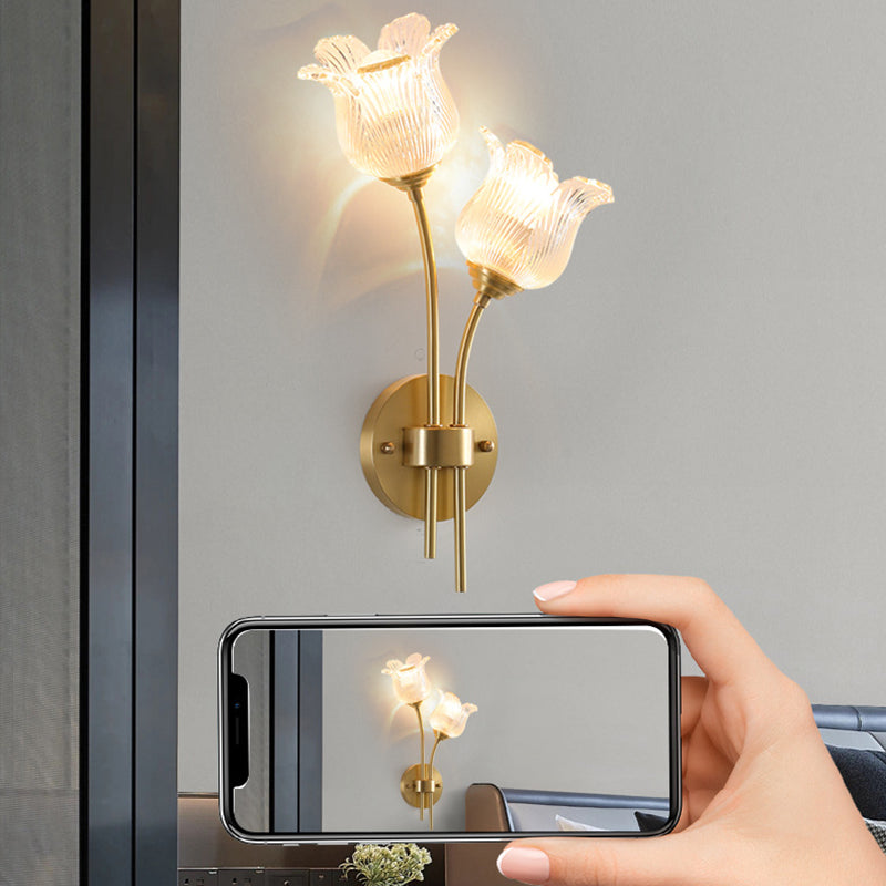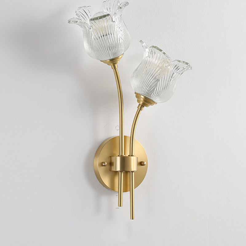 Traditional Vintage Floral Round Glass Copper 2-Light Wall Sconce Lamp For Living Room