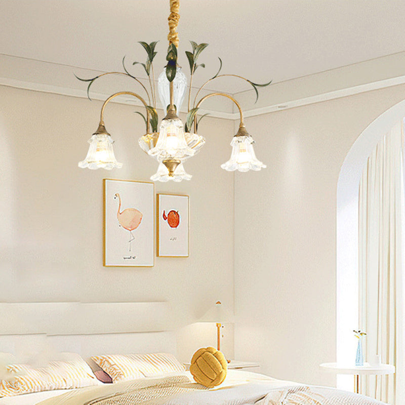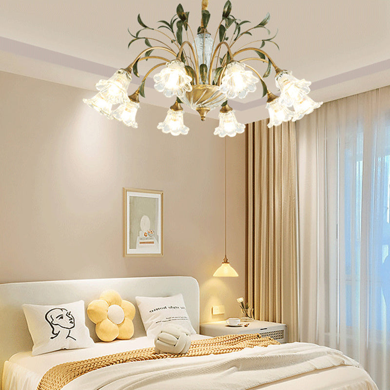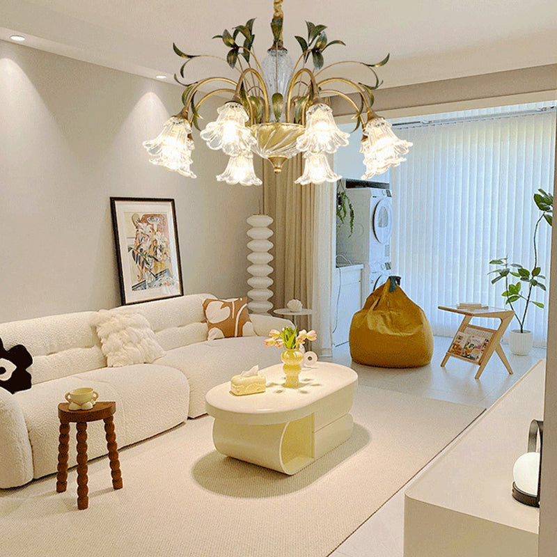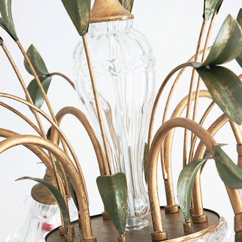 Traditional Vintage Floral Rustic Leaf Round Branch Glass Iron 4/6/8/10 Light Chandelier For Living Room