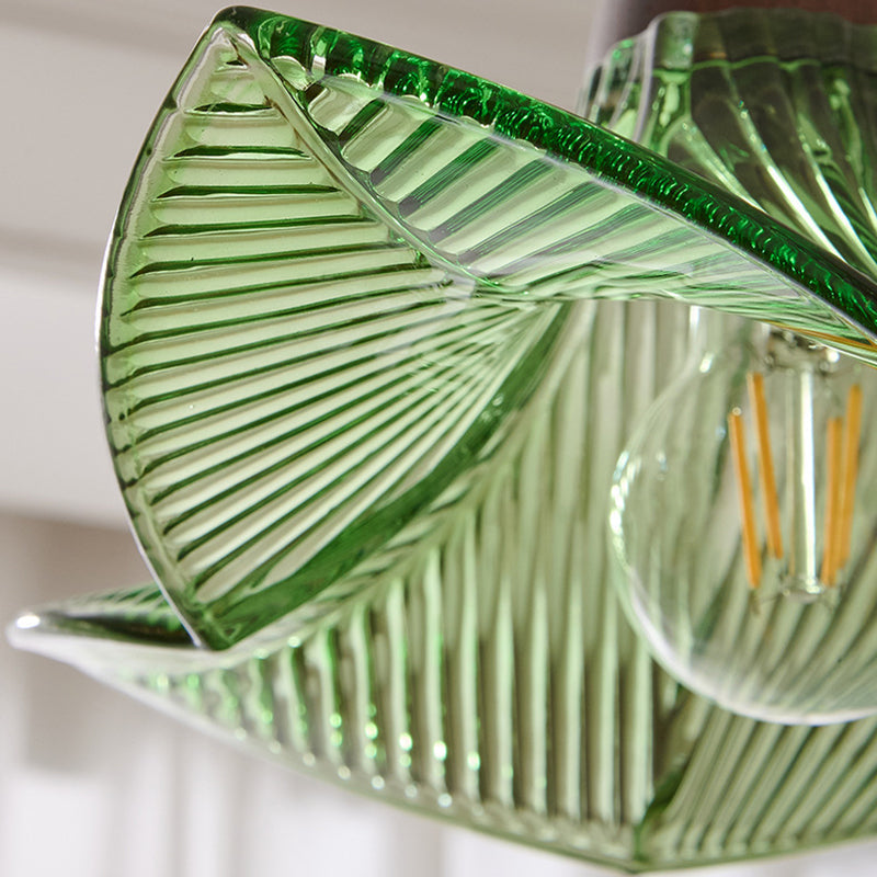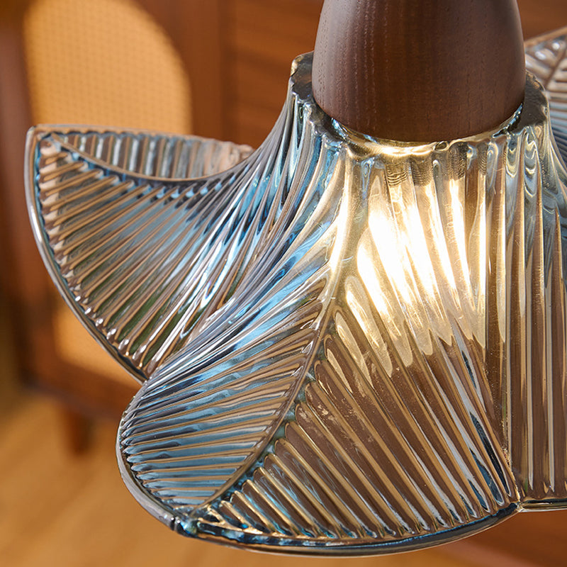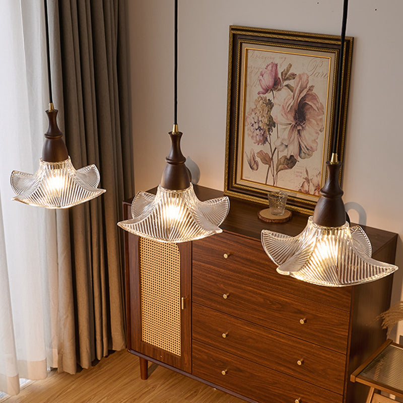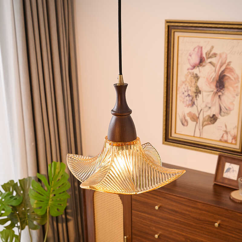 Traditional Vintage Floral Solid Wood Glass 1-Light Pendant Light For Dining Room