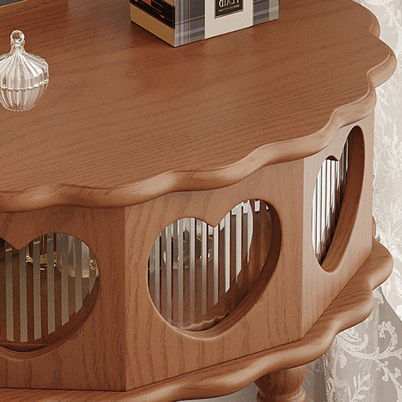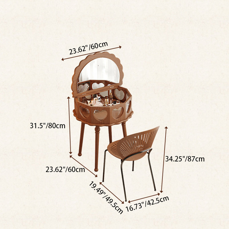 Traditional Vintage Flower Round Solid Wood Glass Makeup Vanity 1-Storage For Bedroom