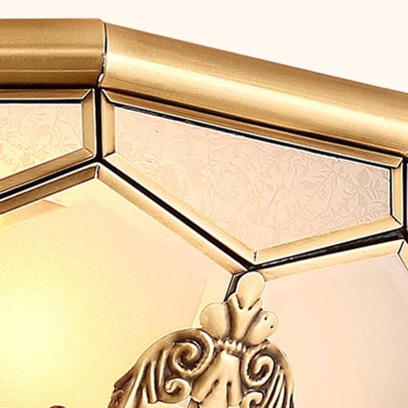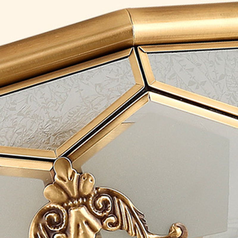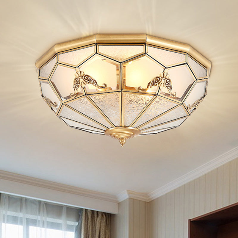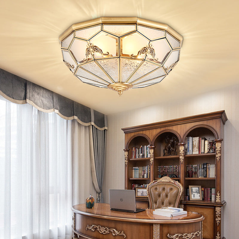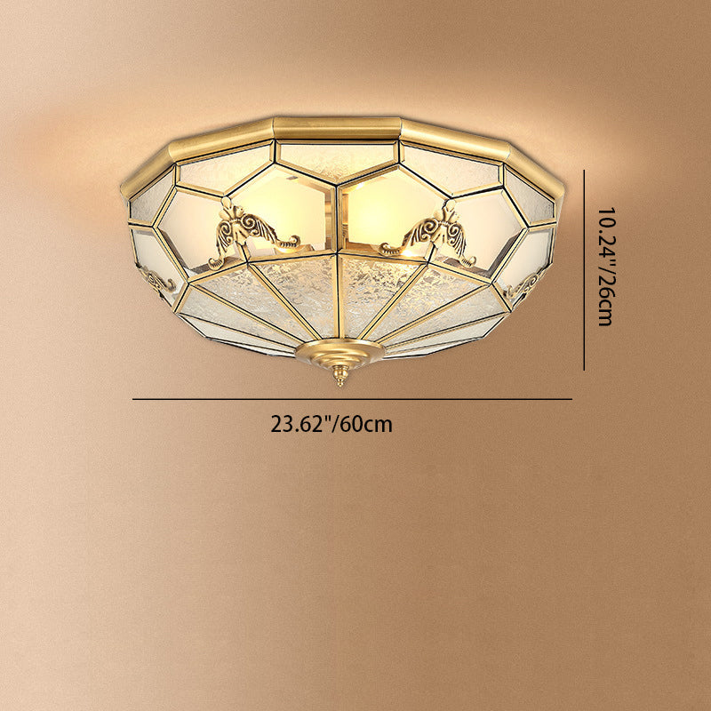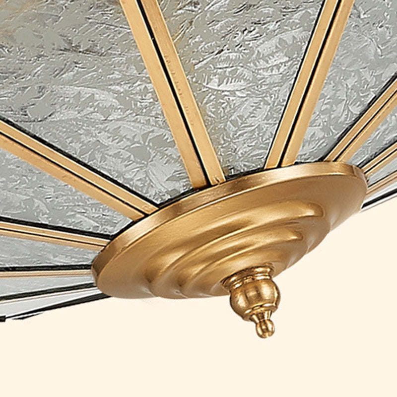 Traditional Vintage Half Circle Umbrella Striped Patterned Copper Glass 3/4/6 Light Flush Mount Ceiling Light For Living Room