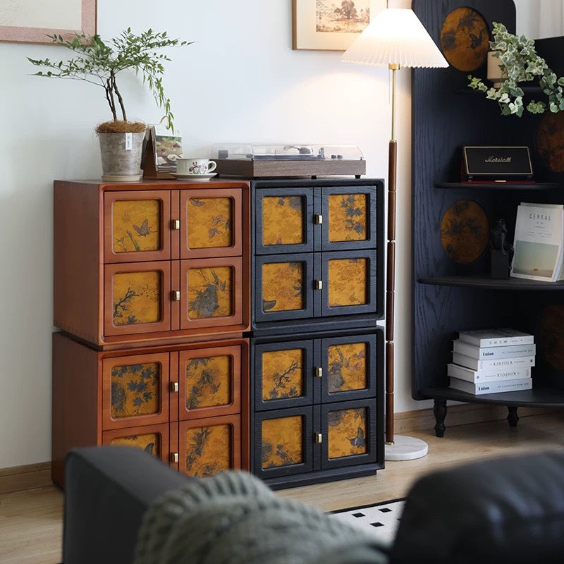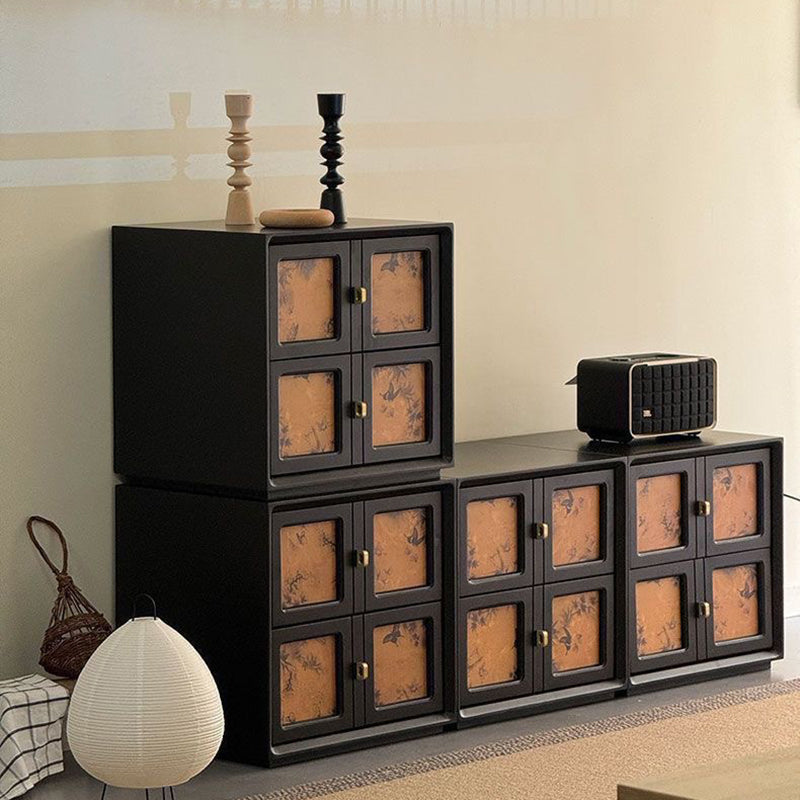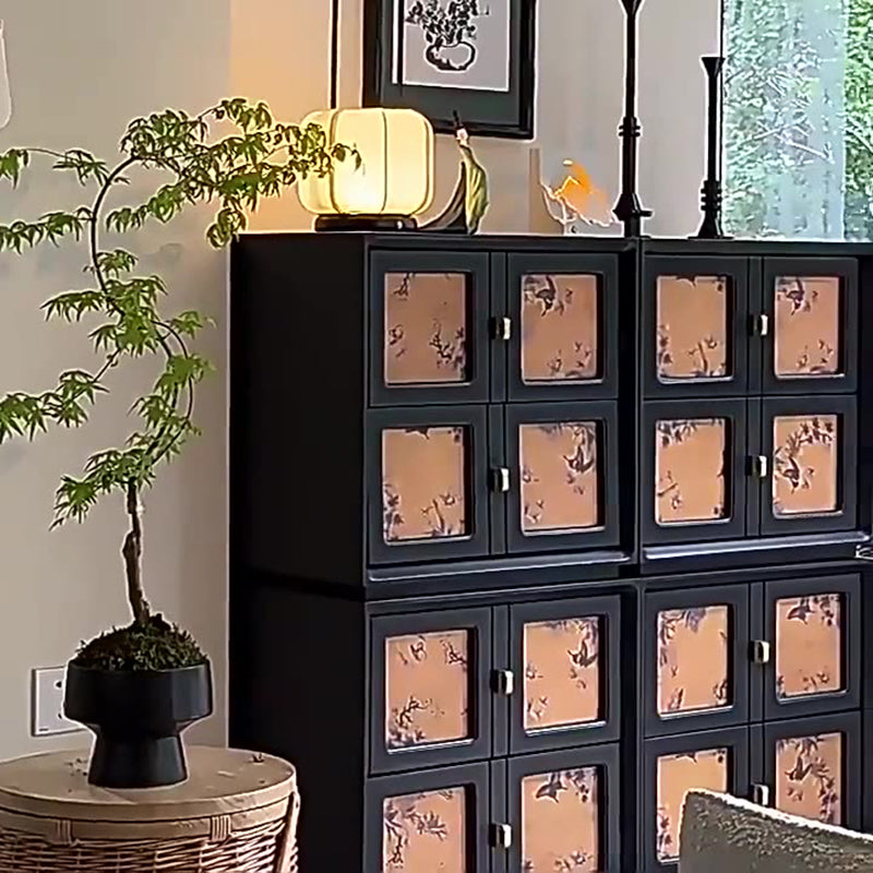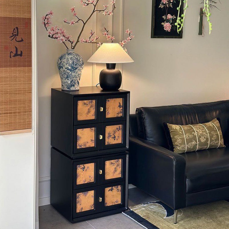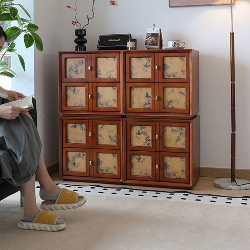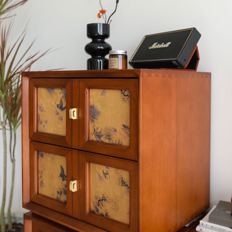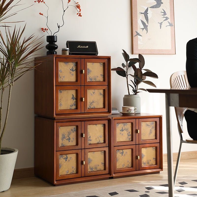 Traditional Vintage Handmade Muslin Boxwood Square Modular Combination Nightstand 2-Drawer For Bedroom
