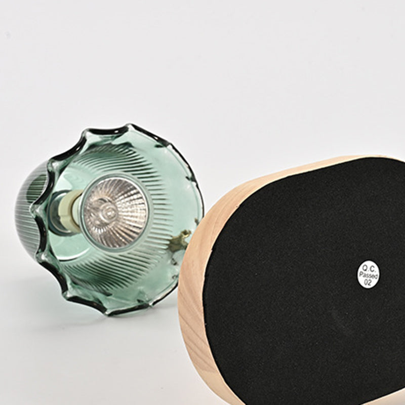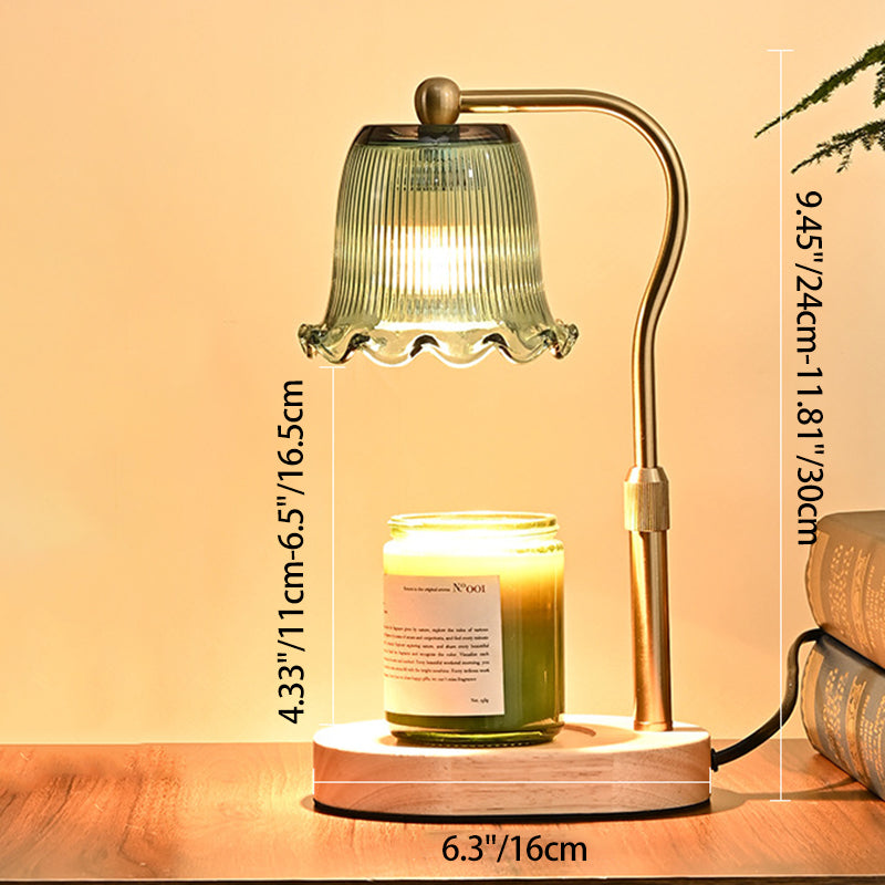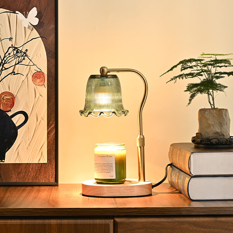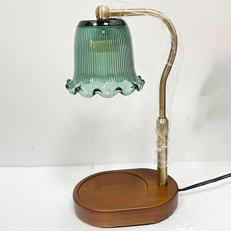 Traditional Vintage Metal Wood Glass Floral Shape 1-Light Melting Wax Table Lamp For Bedroom