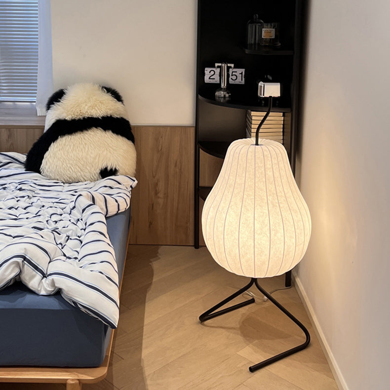 Traditional Vintage Pear Line Iron Fabric 1-Light Standing Floor Lamp For Living Room