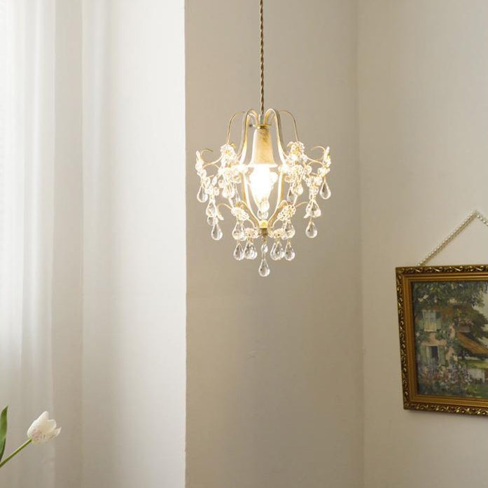 Traditional Vintage Pendant Transparent Iron Crystal 1-Light Pendant Light For Living Room